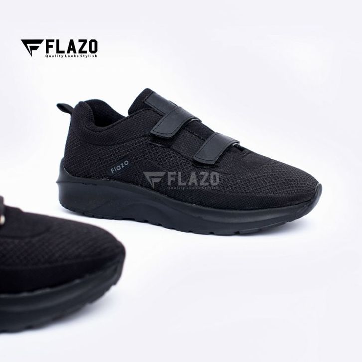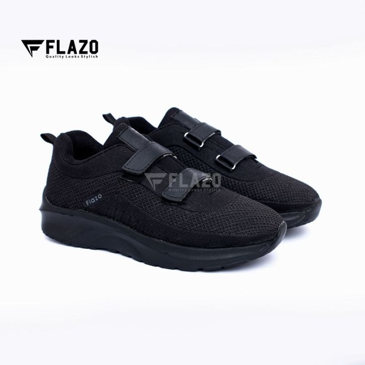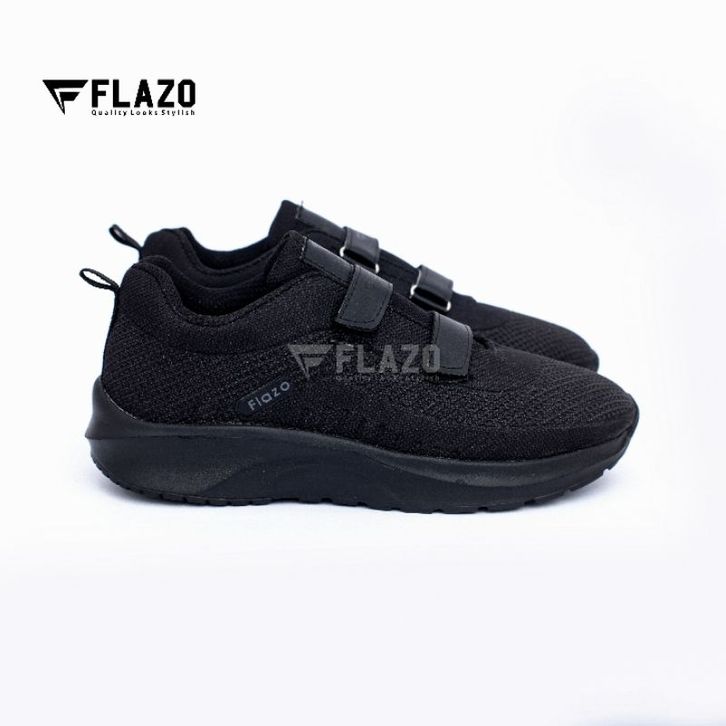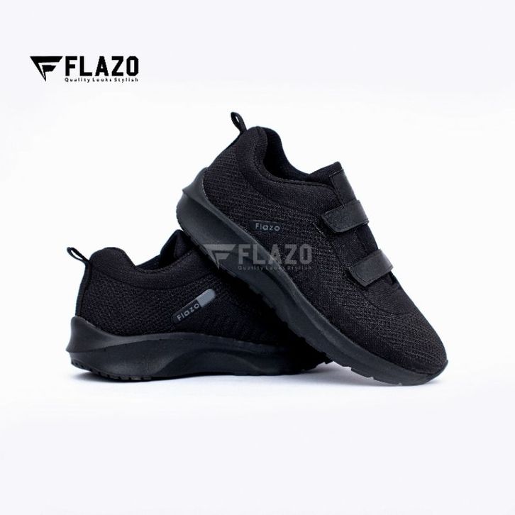 FLAZO - Sepatu Anak Anak / Sepatu Sekolah Anak Laki dan Prempuan Sepatu Snaekers Anak Hitam Polos