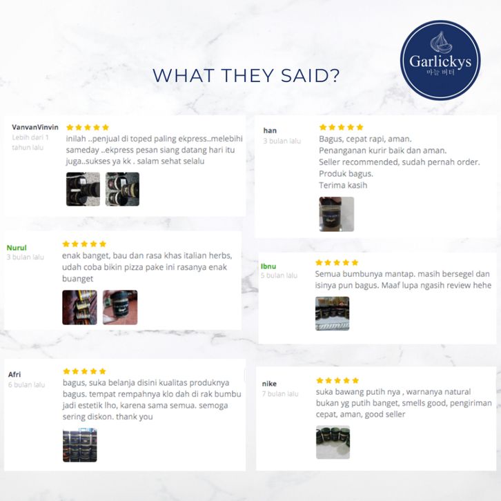 Bawang Putih Bubuk , Bawang Bombay Bubuk, Bawang Merah Bubuk , Lada Hitam Bubuk, Lada Putih Bubuk , Kunyit Bubuk , Cabe Kasar, Ketumbar Bubuk , Lada Hitam Utuh , Lada Putih Utuh, Pala , Jinten , Lada Hitam Kasar , Cajun, Selasih , Wijen Putih , Basil , Cabe Bubuk, Kayu Manis Bubuk , Jahe Bubuk , Kari India, Italian Herbs , Ngohiong , Oregano, Paprika Bubuk , Parsley , Rosemary , Thyme, Sichuan Pepper , Jahe Merah Bubuk , Laos Bubuk, Chia Seed , Cayenne Pepper , Sereh Bubuk, Kencur Bubuk , Kemiri Bubuk , Stevia Bubuk, Kaldu Ayam Kampung , Kaldu Sapi , Kaldu Jamur, Kaldu Sayur, Sendok , Bawang Bombay Bubuk