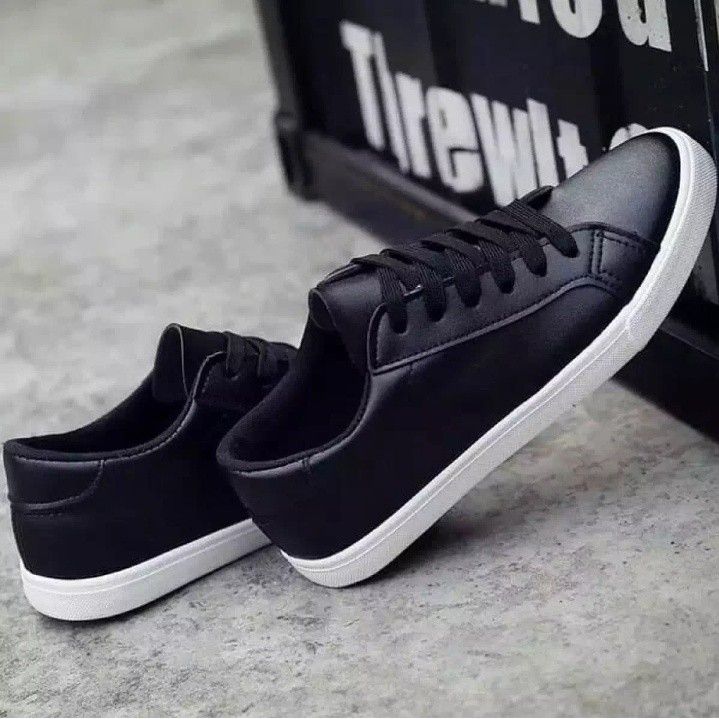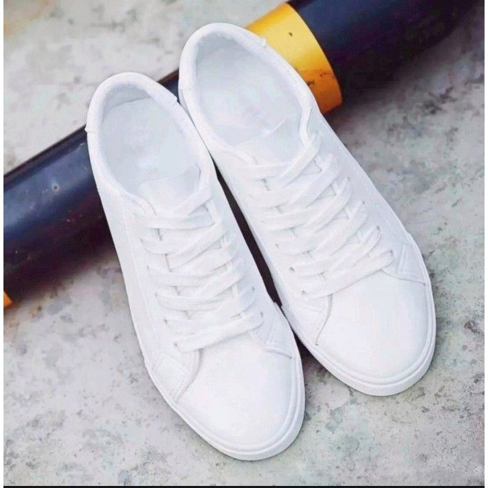 Sepatu Kets putih polos dan hitam polos / sepatu sekolah kuliah sepatu santai REAL PICTURE