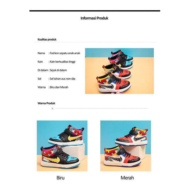 MOSBO Sepatu Anak Cowok Spiderman Sepatu Boot Anak Cowok Cewek Sepatu Boots Kulit Spiderman Sneakers Sekolah Impor Model