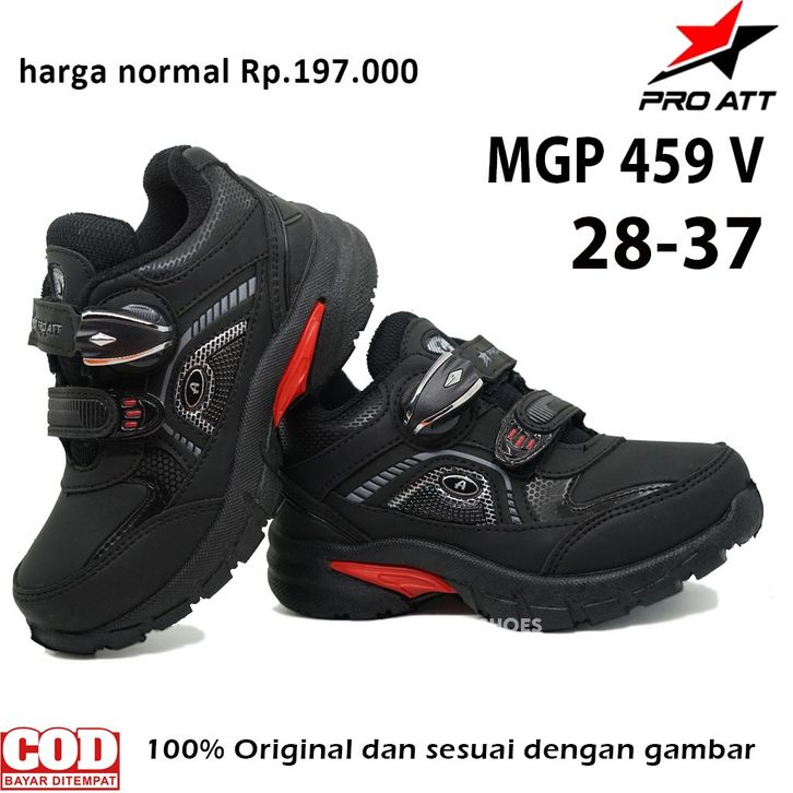 Sepatu Sekolah PRO ATT MGP MAGNET 457 V Anak Laki Laki Perempuan Hitam Perekat PAUD TK SD