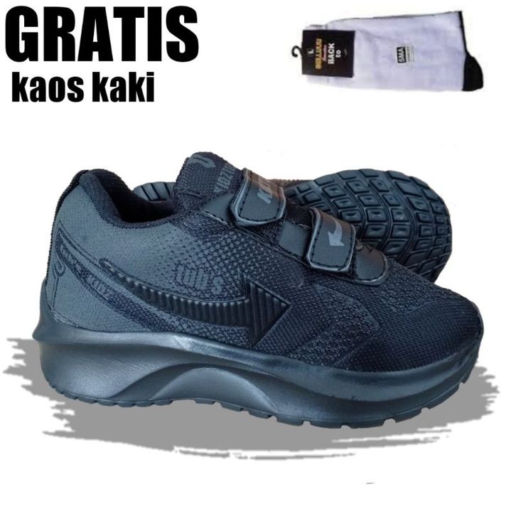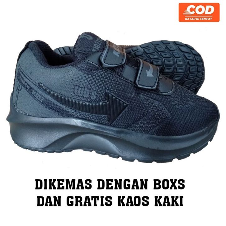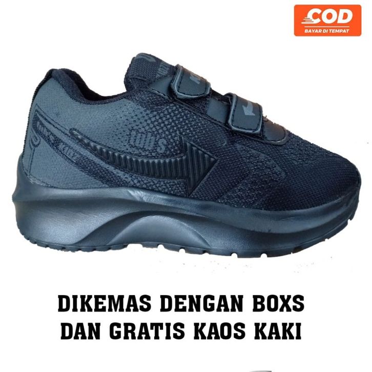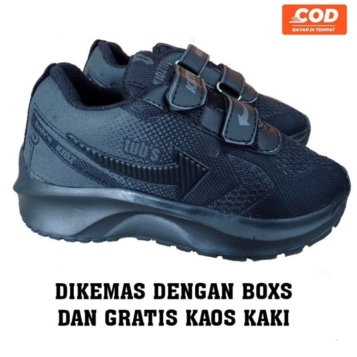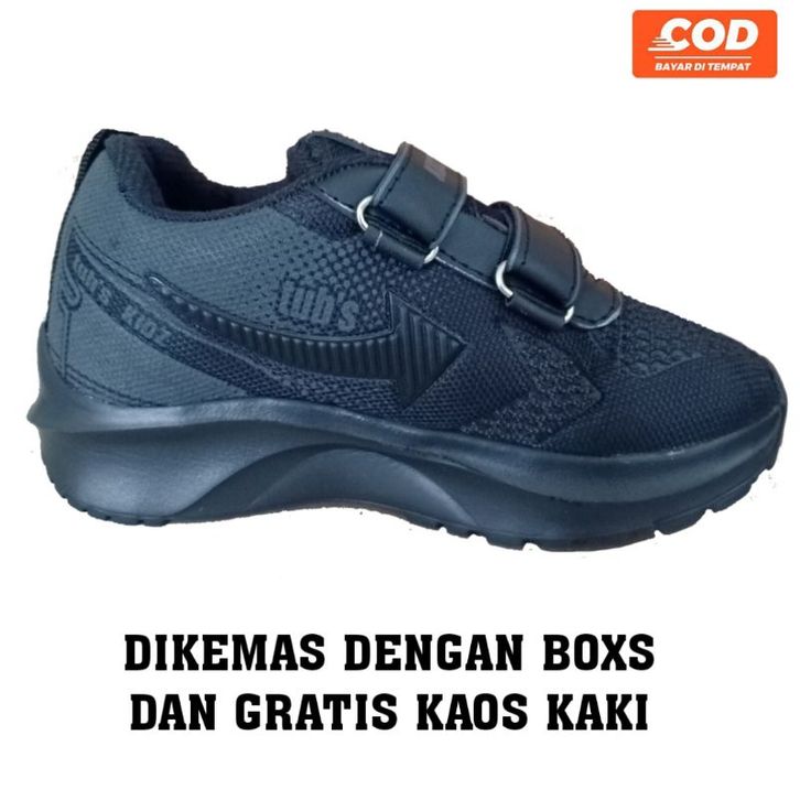 Sepatu Sekolah Anak Laki Laki Perempuan Cewek Cowok Warna Hitam Murah Tali Perekat RekatKecil Tanggung Umur Usia PAUD TK