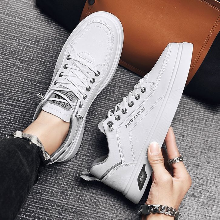 Highland Sepatu Pria Putih Sneakers Tali Casual Sepatu Cowok Sekolah Trendy Kerja Kuliah Outdoor Running Shoes MC429