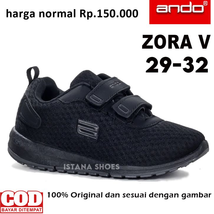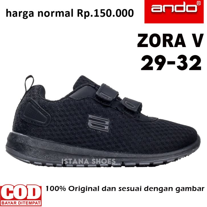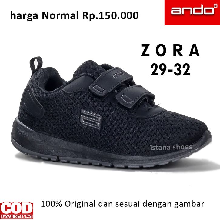 SEPATU SEKOLAH ANAK PEREMPUAN ANDO ZORA FULL BLACK PAUD TK SD KETS PEREKAT