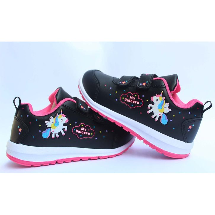 SEPATU SEKOLAH ANAK PEREMPUAN ANDO KUDA PONY PINK PAUD TK SD KETS SPORT RUNNING MINICORN HITAM