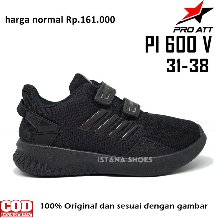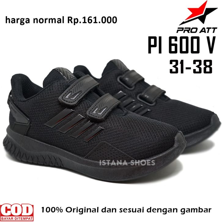 Sepatu Sekolah Anak Laki Laki Cowok Perempuan TK SD SMP Full Hitam Sneakers Casual Perekat PRO ATT PI 600