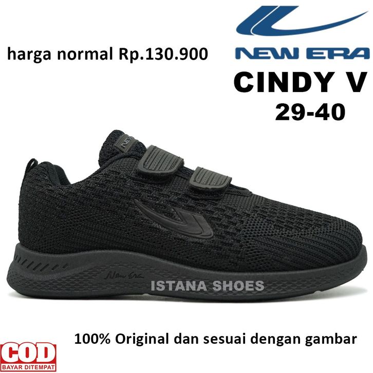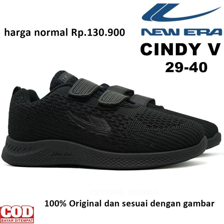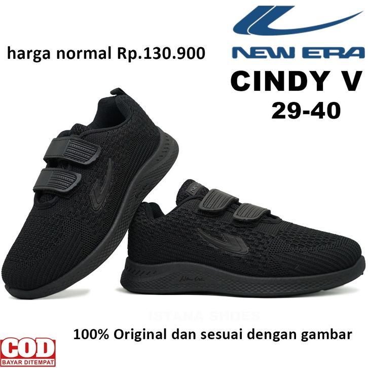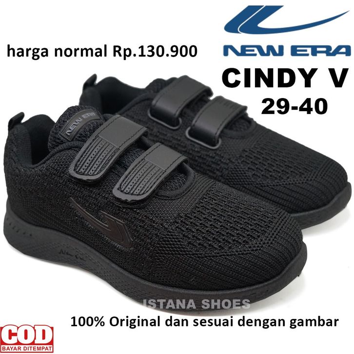 SEPATU SEKOLAH ANAK PEREMPUAN LAKI LAKI NEW ERA CINDY 03 PEREKAT, SEPATU ANAK KETS TK SD SMP FULL BLACK SNEAKERS