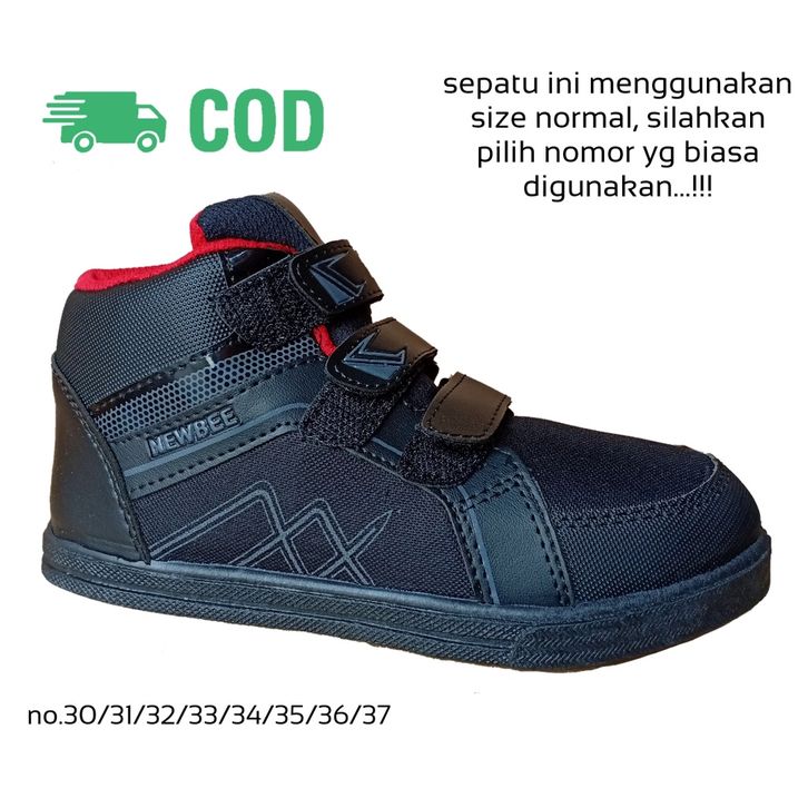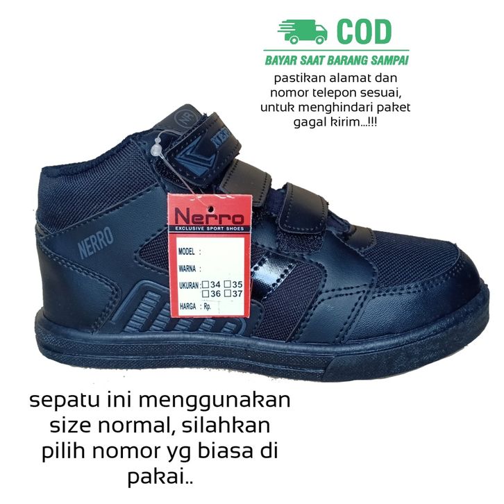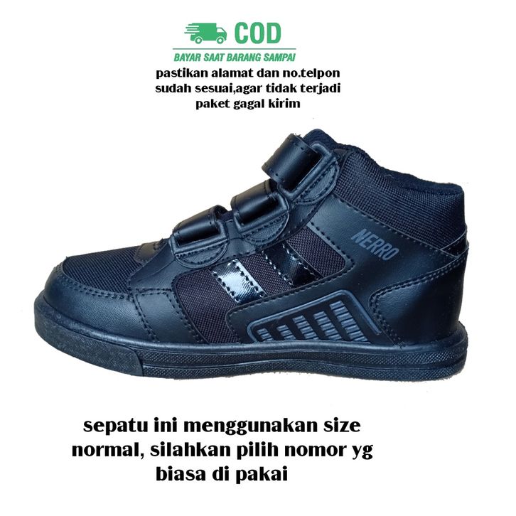 Sepatu Sneaker Sekolah Anak Anak Laki Laki Perempuan Cewek Cowok Warna Hitam Tali Perekat Kecil Tanggung Umur Usia PAUD