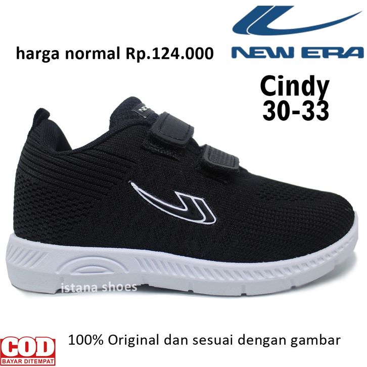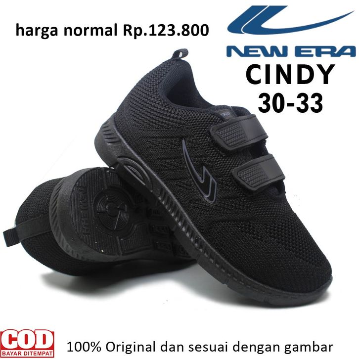 SEPATU SEKOLAH ANAK PEREMPUAN LAKI LAKI NEW ERA CINDY 03 , SEPATU ANAK KETS TK SD HITAM