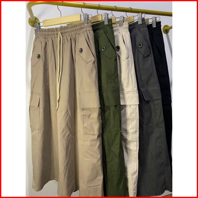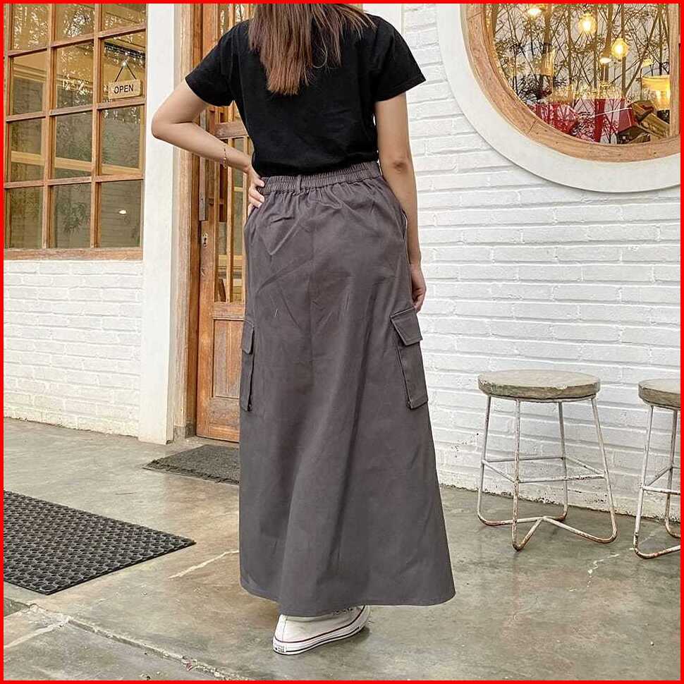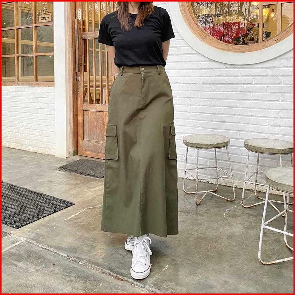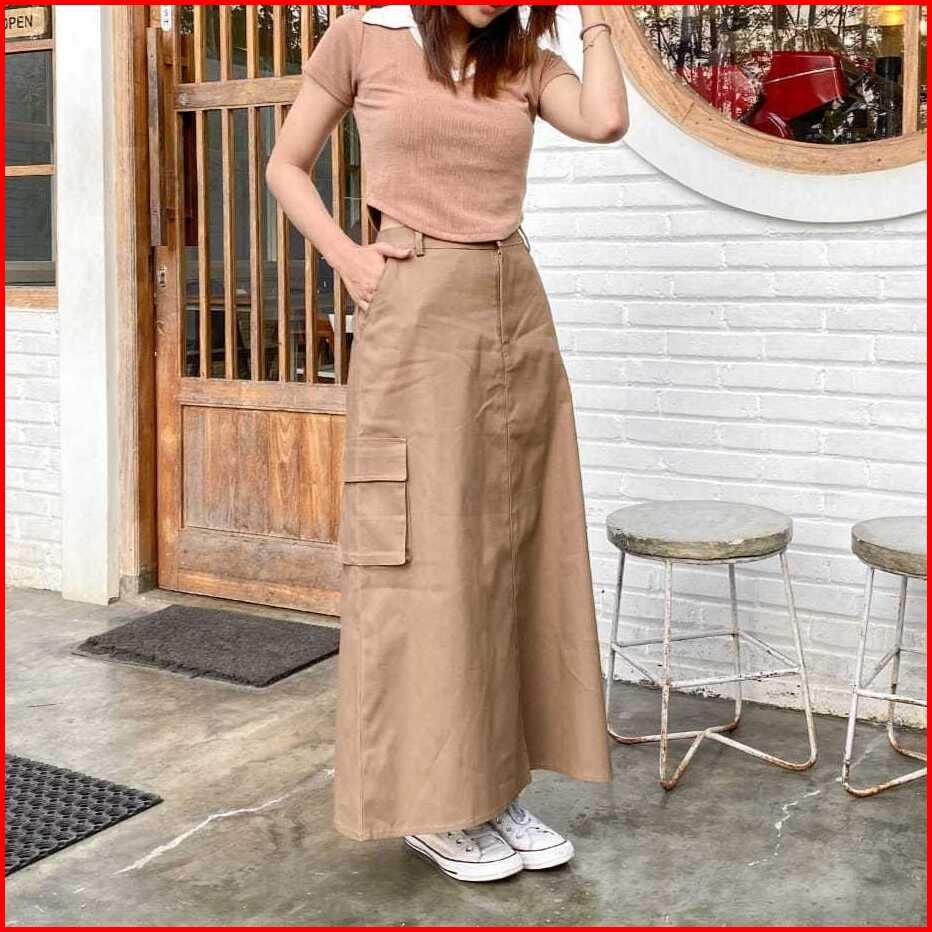 Rok Cargo Wanita Rok Panjang Twill Combet Rok Korean Style Rok Cargo Wanita Jumbo