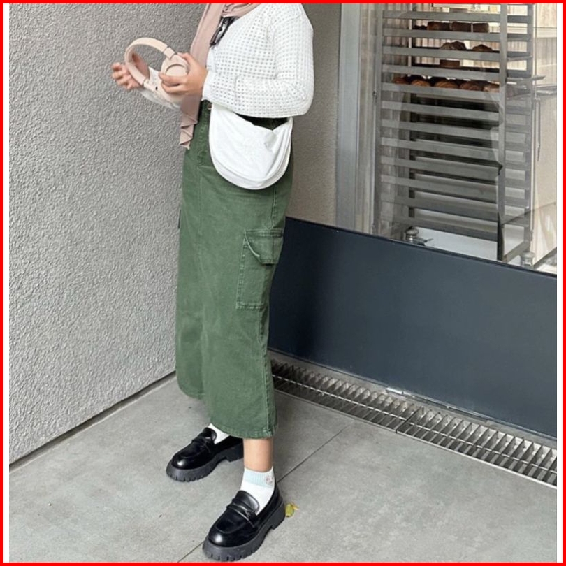 Loxee - Rok Jeans Cargo Highwaist Wanita Terbaru