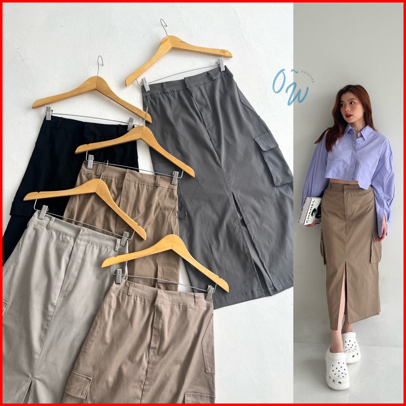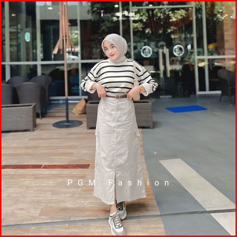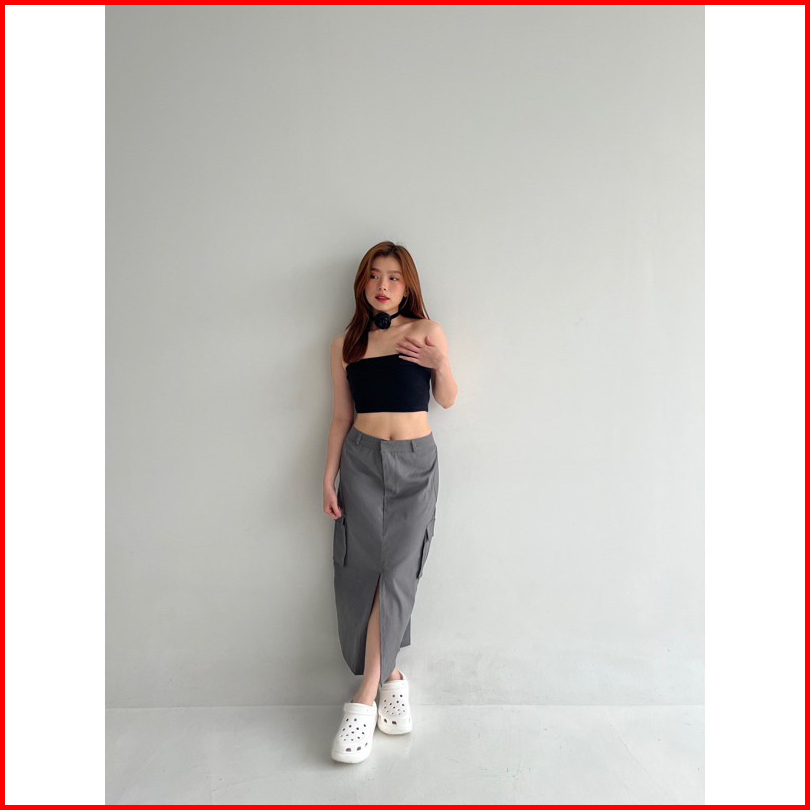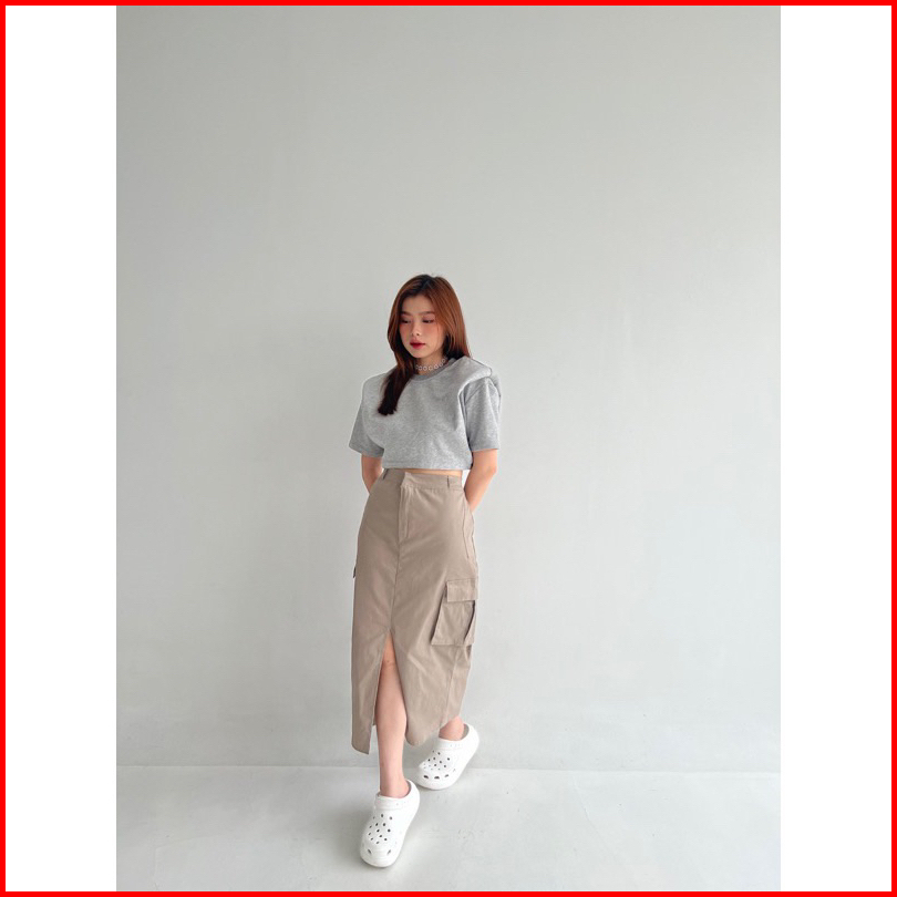 Rok Cargo Belah Tengah Skirt Wanita Standart Jumbo