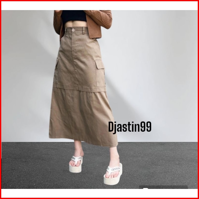 Rok Panjang Kargo Twill Strech Skirt Kargo Korea Style