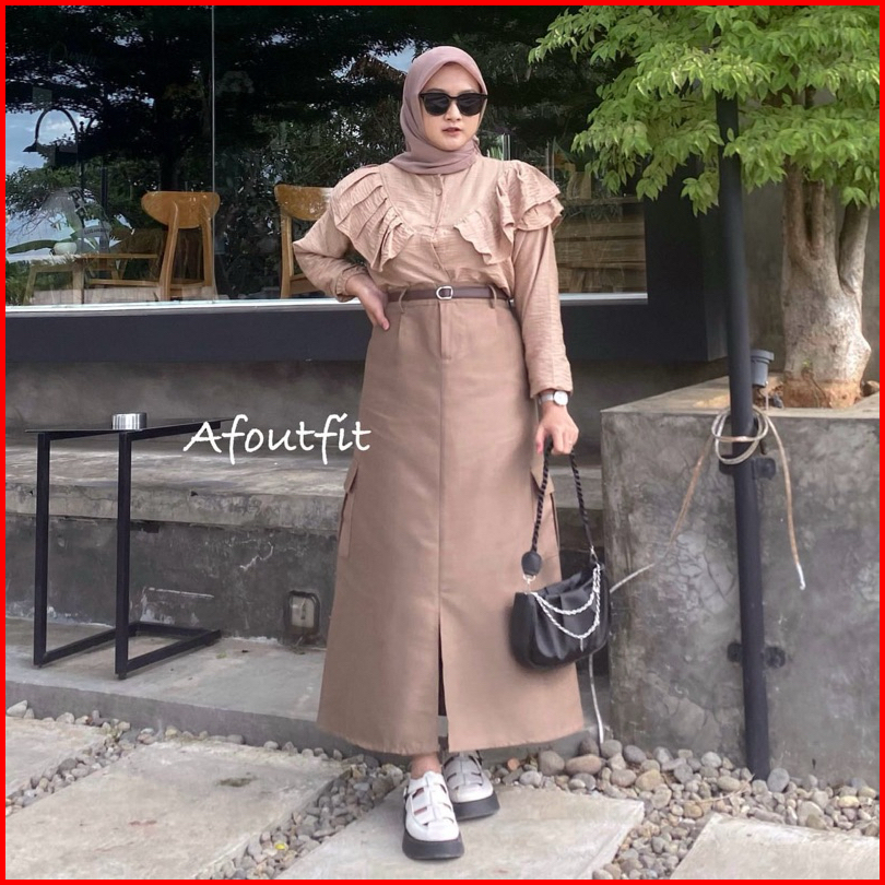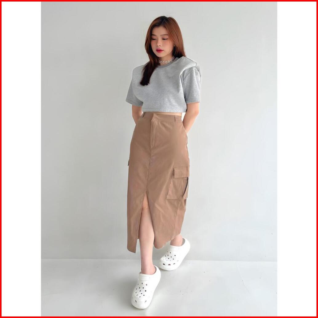 Cargo Skirt Wanita - Rok Belah Depan Cargo Kekinian