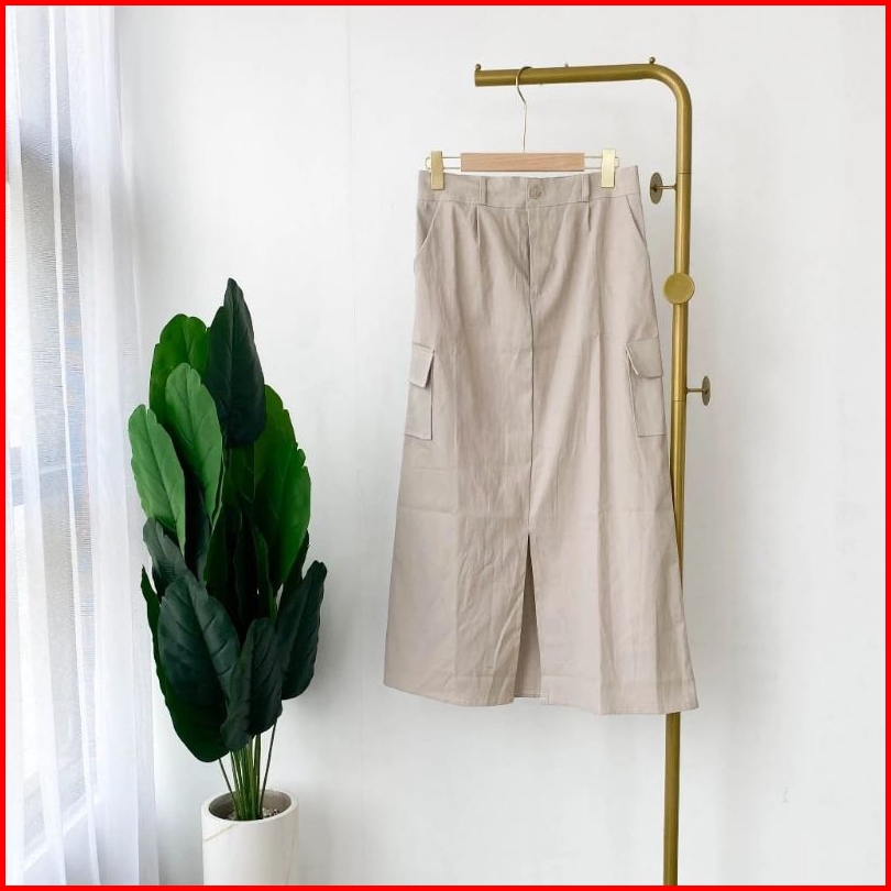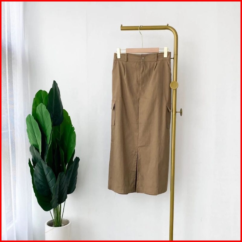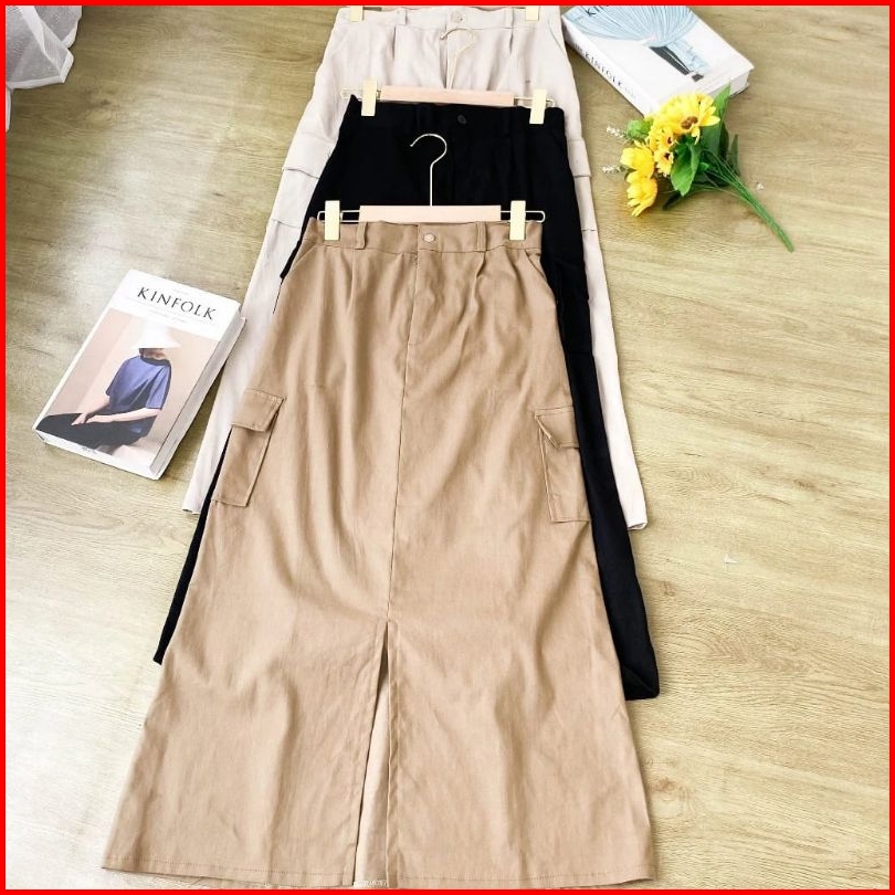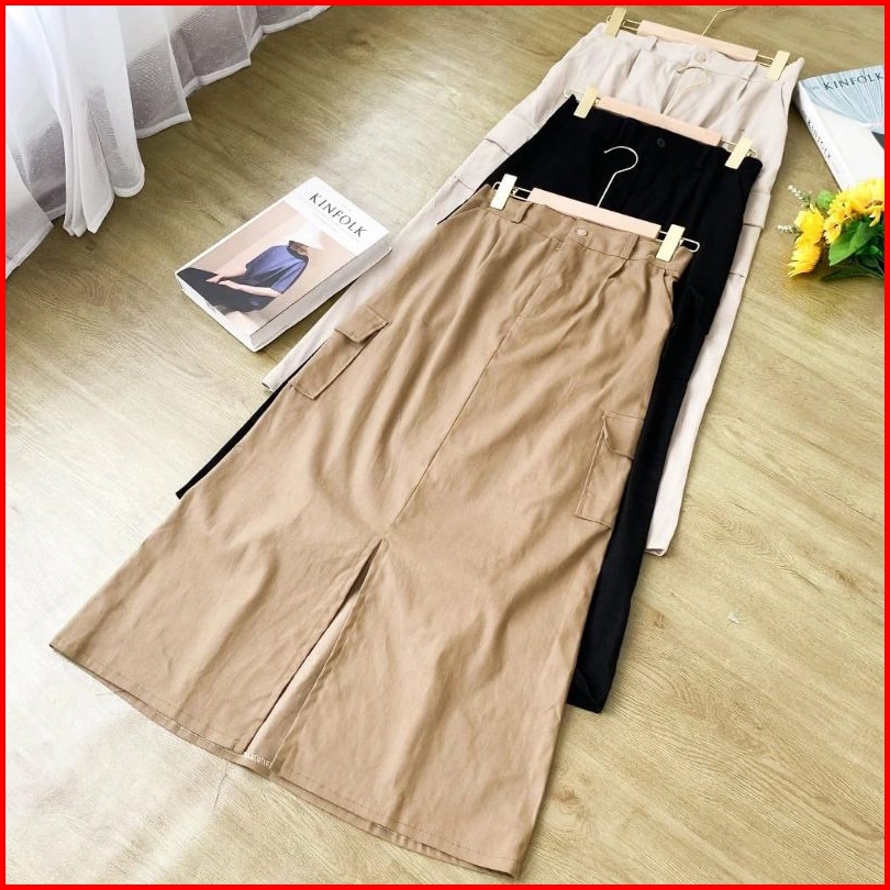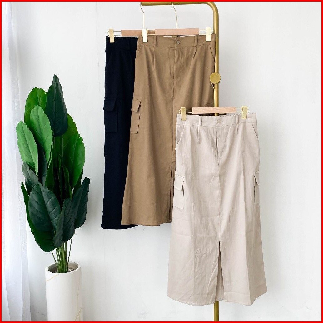 Rok Cargo Jumbo Long Skirt Cargo Jennie Rok Kargo Katun Twill Wanita Panjang Fit 50-90 Kg