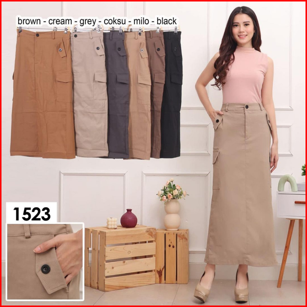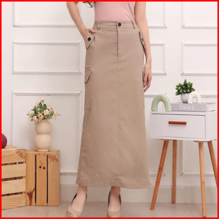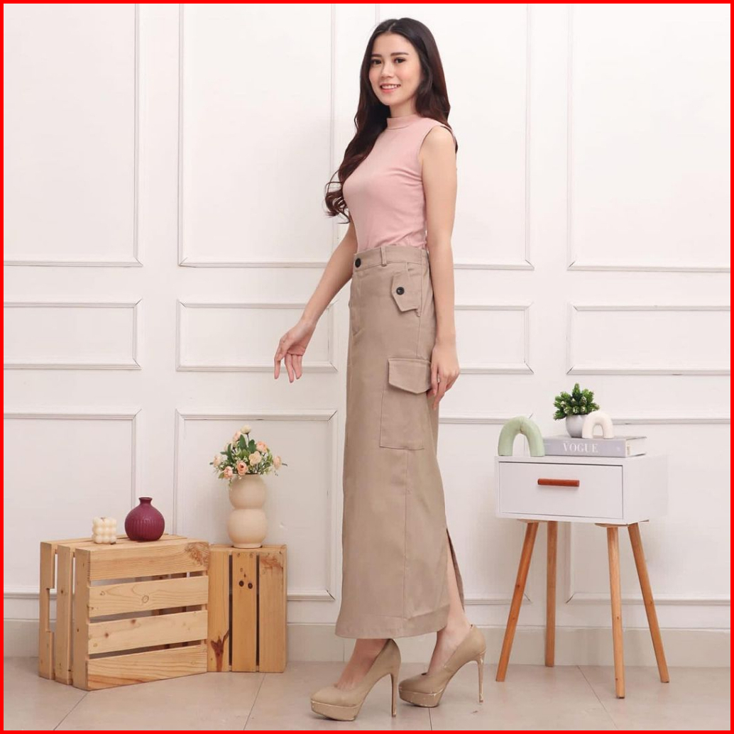 Naira Skirt - Rok Maxi Panjang Wanita Kargo Kekinian Korean Style Cargo Skirt