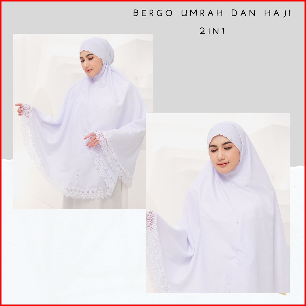 Kerudung Bergo Putih Umroh Dan Haji 2in1 Lesti Kejora Perlengkapan Haji Umroh Wanita