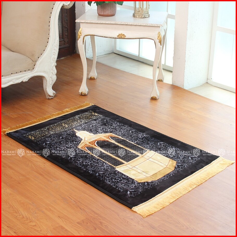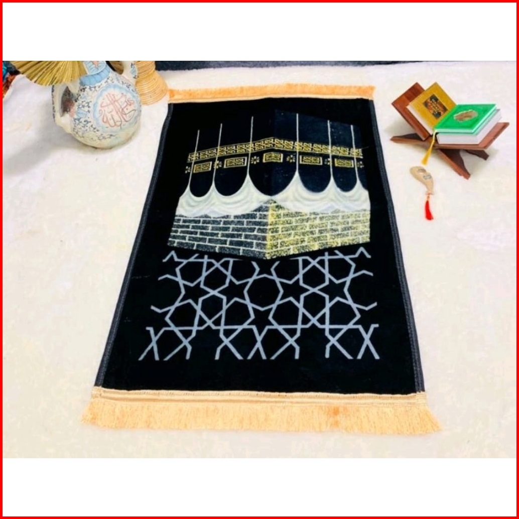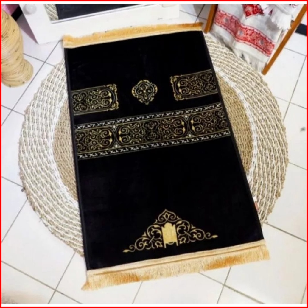 Promo Sajadah Tebal Kiswah Hitam Turki Original Anti Slip Rumbai