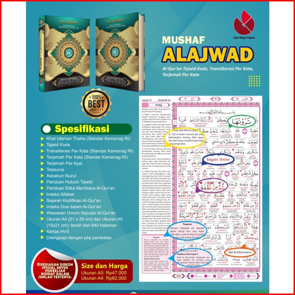 Al Quran Besar Ada Latin Per Kata Terjemah Lengkap Tajwid - Al Ajwad - Hvs - Ukuran A4 - 21x29 Cm