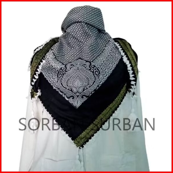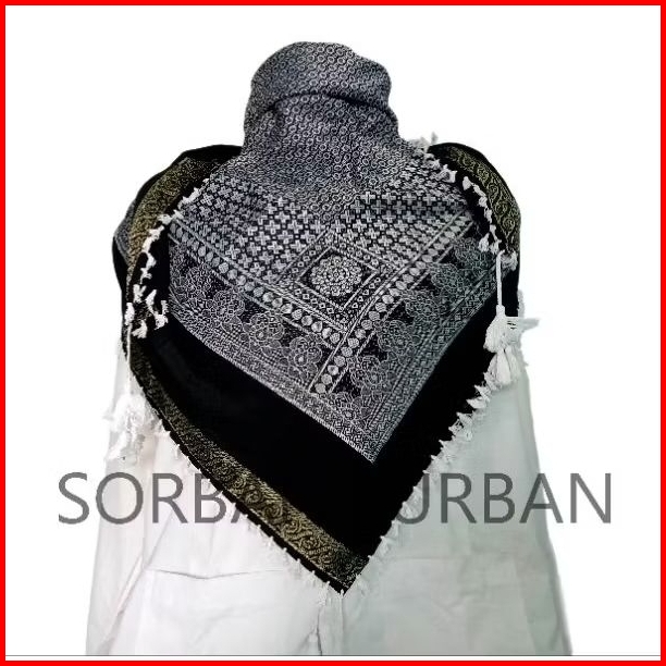Sorban Kashmiri Persegi Hitam Putih Import India Imamah Persegi Hitam Putih