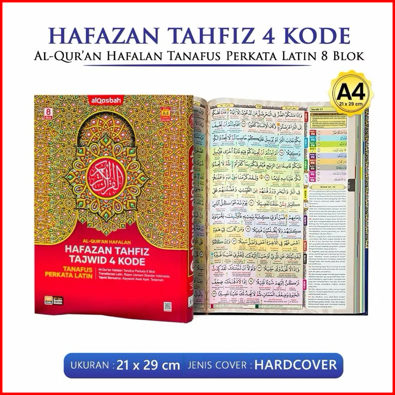 Al Quran Hafazan Tahfiz Perkata Latin A4 Alquran Terjemah Tajwid Hafalan 8 Blok Warna
