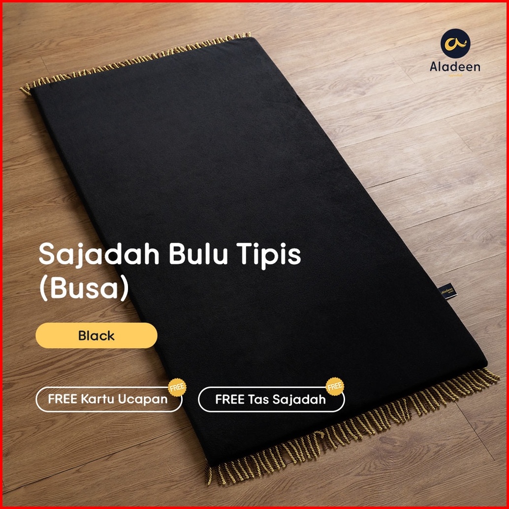 Sajadah Polos Bulu Tipis Hitam Aladeen - Size Dewasa Free Tas Dan Kartu Ucapan