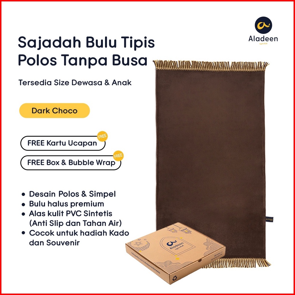 Sajadah Aladeen Polos Bulu Tipis Tanpa Busa - Size Dewasa Anak Free Kartu Ucapan Dan Box