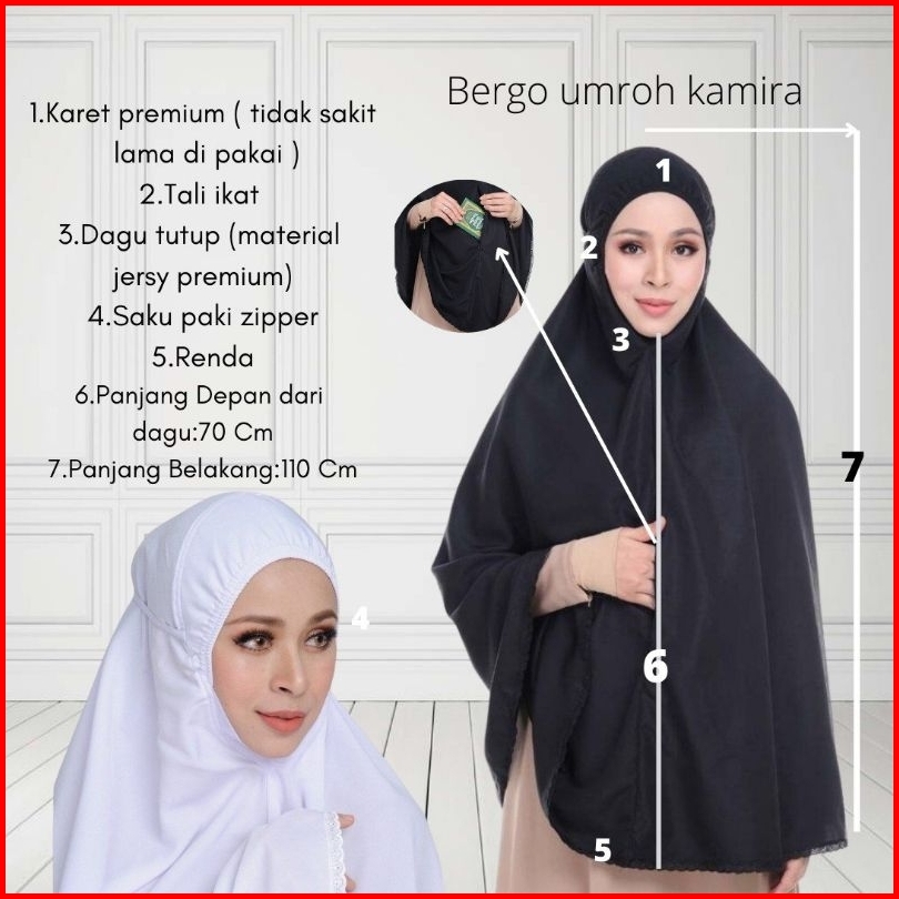 Bergo Hijab Kerudung Umroh Dan Haji Saku Resleting Bahan Katun Terlaris