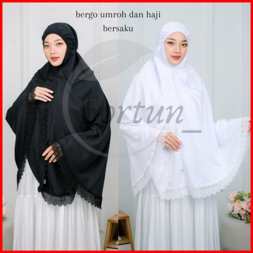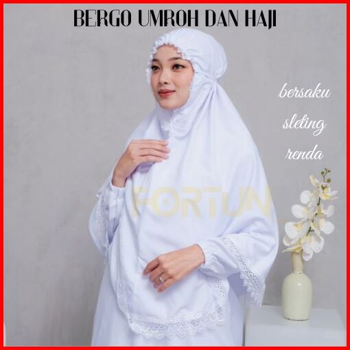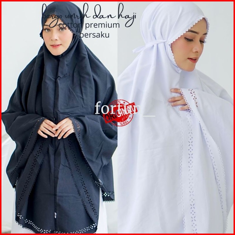 Bergo Umroh Haji Bahan Katun Premium Hijab Jumbo Bersaku Umroh Khimar Pashmina Diamond Ceruty Termurah