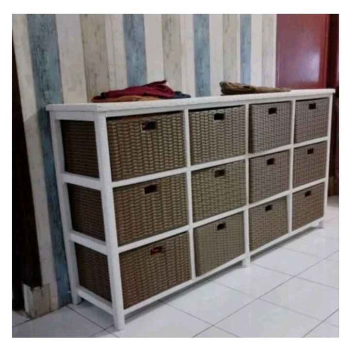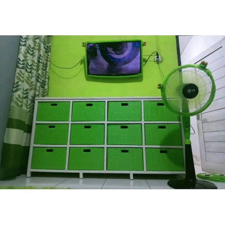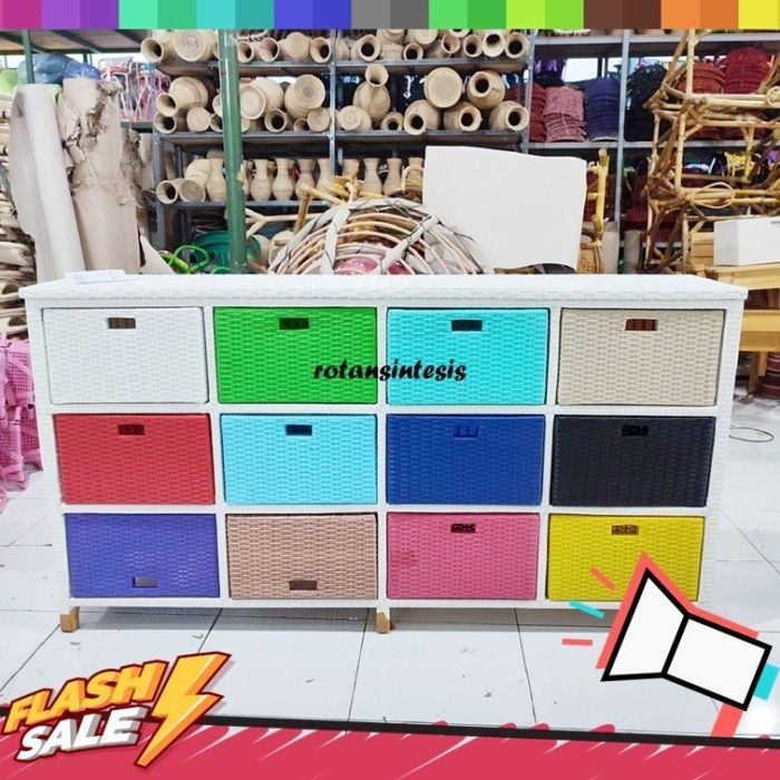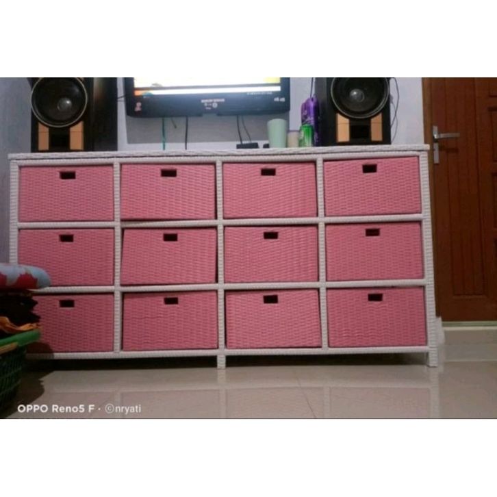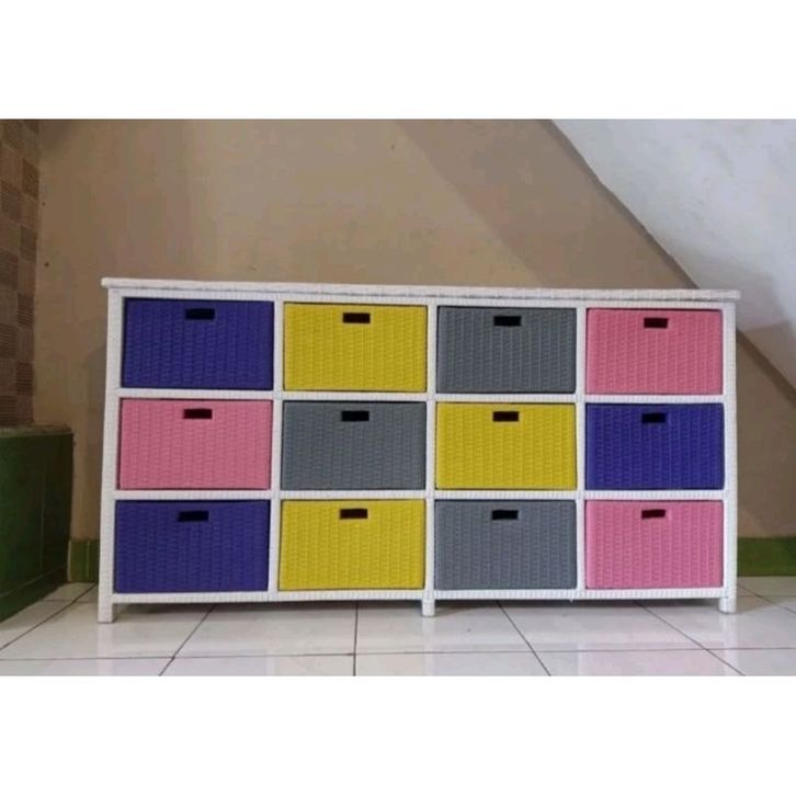 Lemari Rotan Warna Warni Sintetis 12 laci Jasmin Jumbo Susun Bufet TV Sintetis Anyaman Kuat