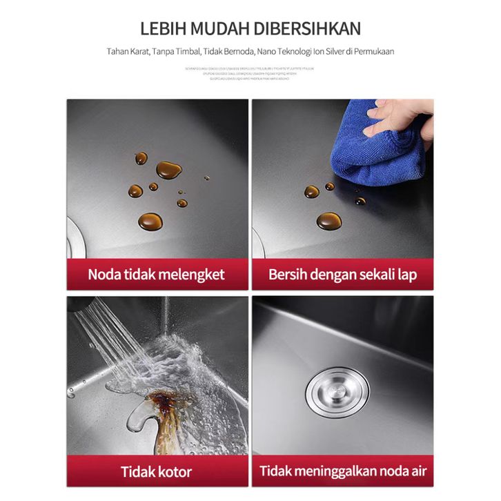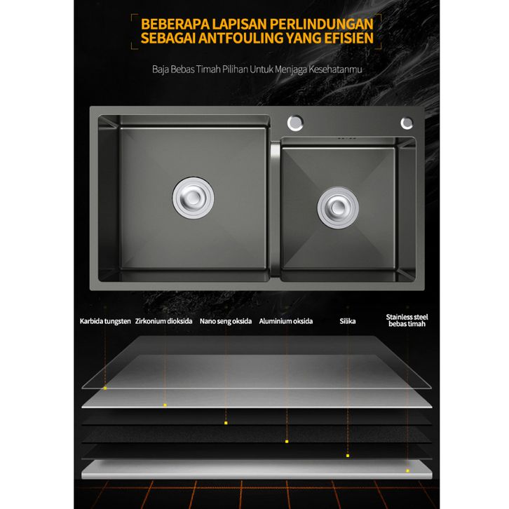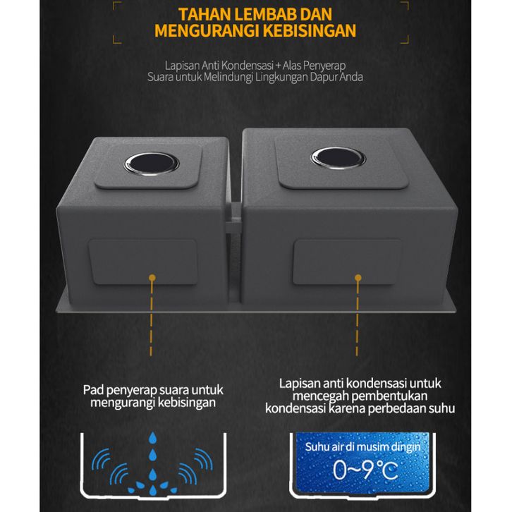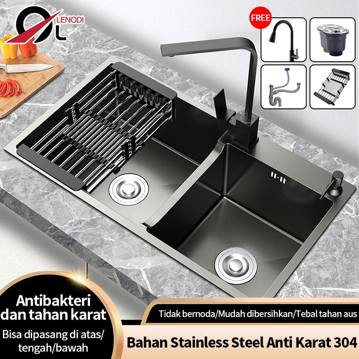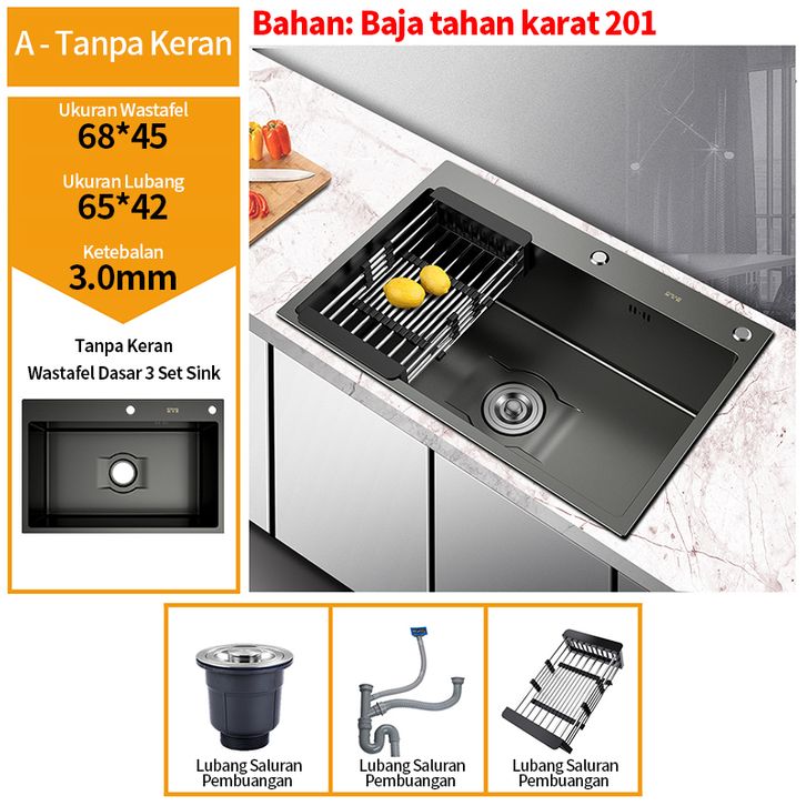 Wastafel Cuci Piring Set Kitchen Sink Dapur Portable Black 7843 Keran yang Bisa Disesuaikan