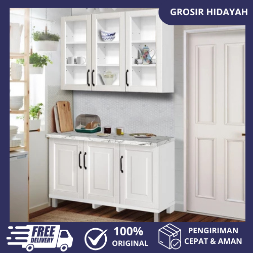 Kitchen Set Lemari Dapur Rak Makan Penyimpanan Atas Bawah Gantung Dinding Putih Rak Piring 2 3 Pintu Kayu MDF Minimalis