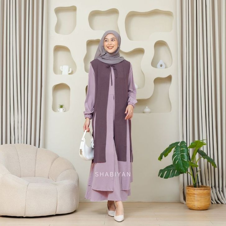 GAMIS LEBARAN 2026 GAMIS WANITA CARDIGAN PANJANG SET OUTER INNER LEPAS PASANG XS - XXL