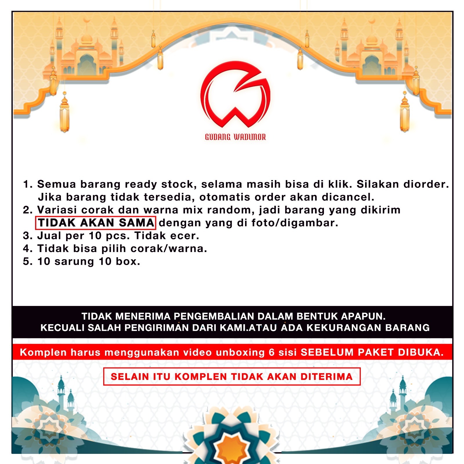 Grosir 10 Pcs Sarung Mangga Gold Kembang