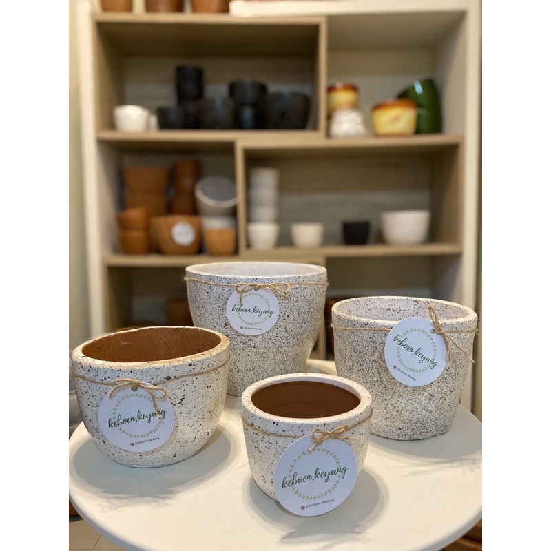 KEBOEN KEYANG POT TEMBIKAR MARBLE PUTIH,DIAMETER 11CM TINGGI 8CM