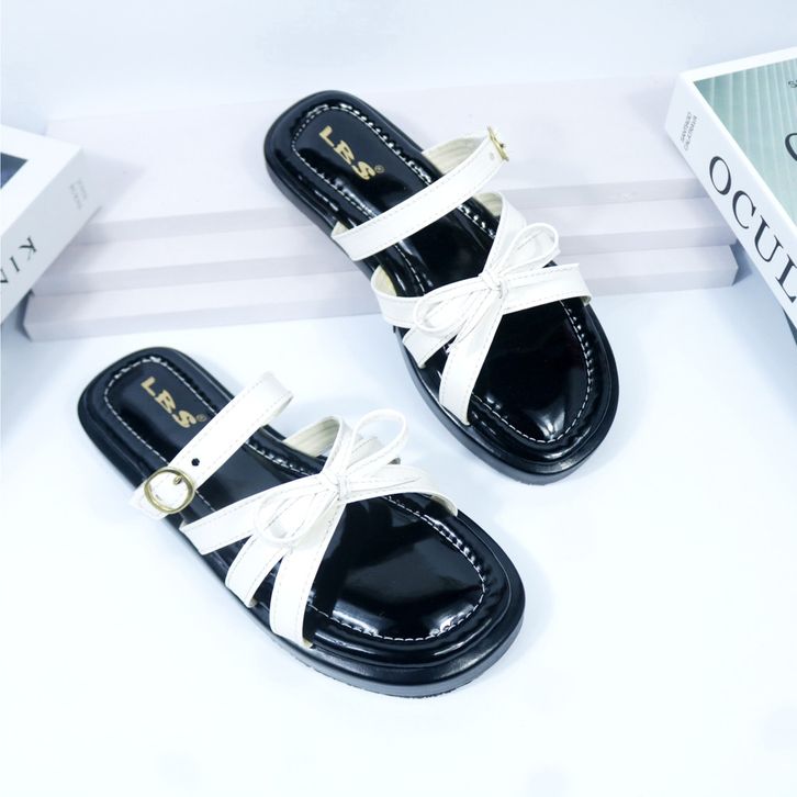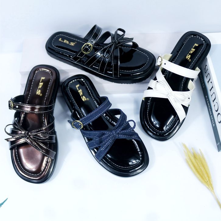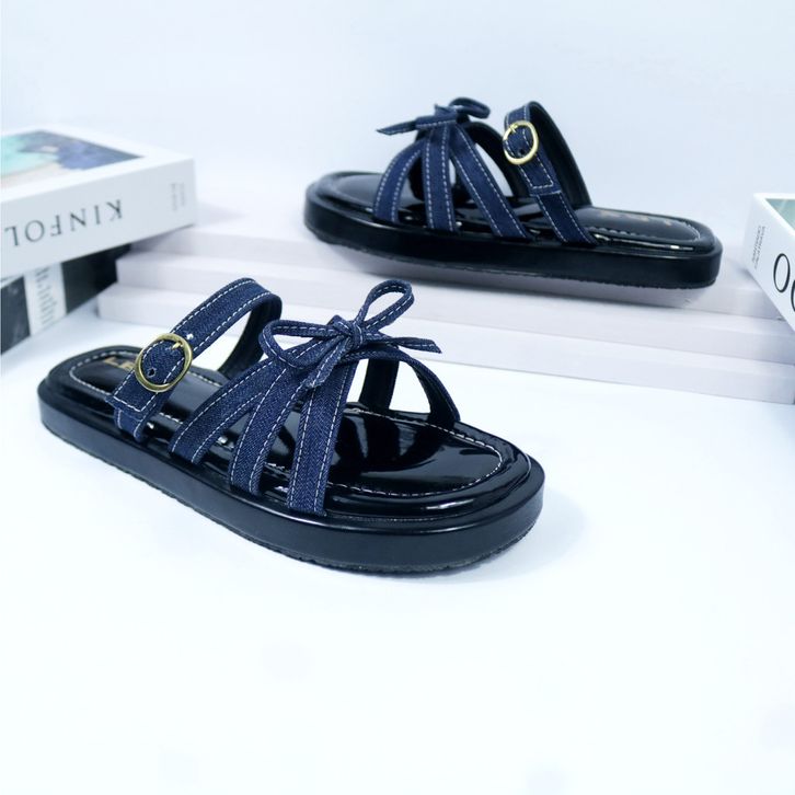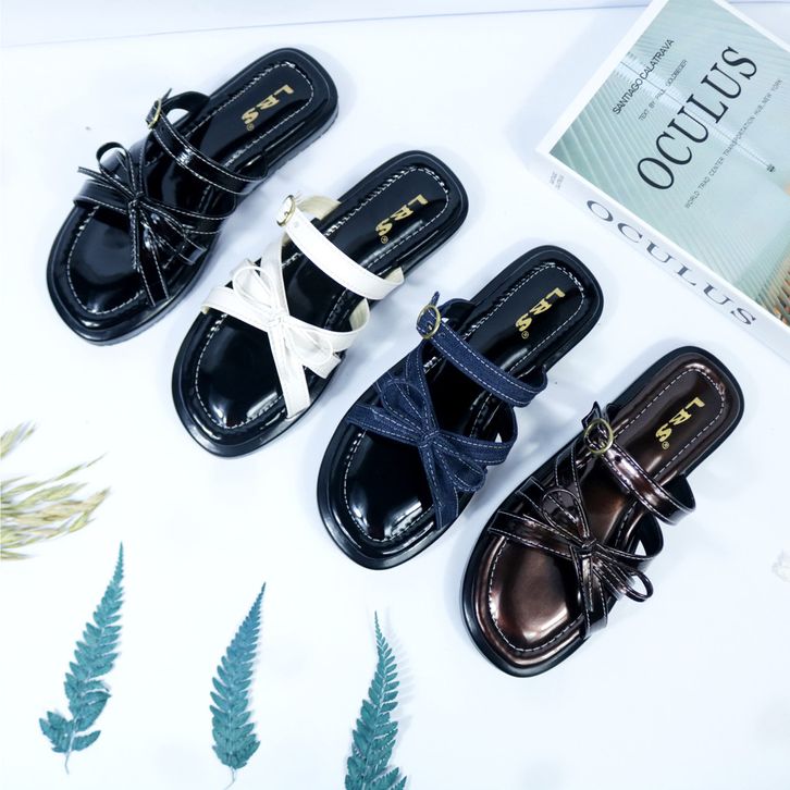 Sandal Wanita Murah Model Pita Cantik Korean Style Tali Gesper Empuk Sandal Slop Cewek Kekinian
