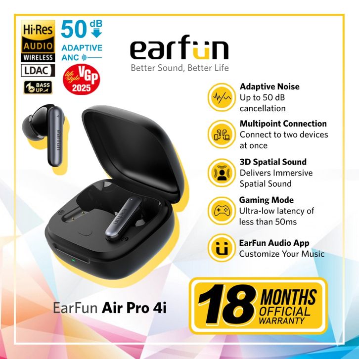EarFun Air Pro 4i - Noise Free ANC TWS with 6 AI ENC Mic for Clear Sound