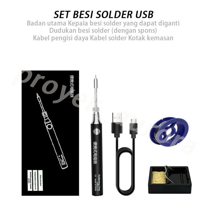 Deli Original USB Comfortable Charging Electric Soldering Iron - Solder Listrik Set Uap Blower HP Station Dekko Tekiro