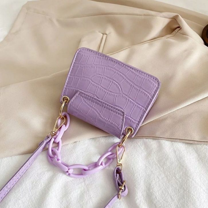 MELINDA Tas Selempang Wanita Croco Mini Lilac Rantai JENINIE