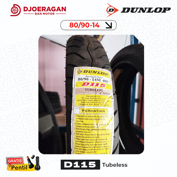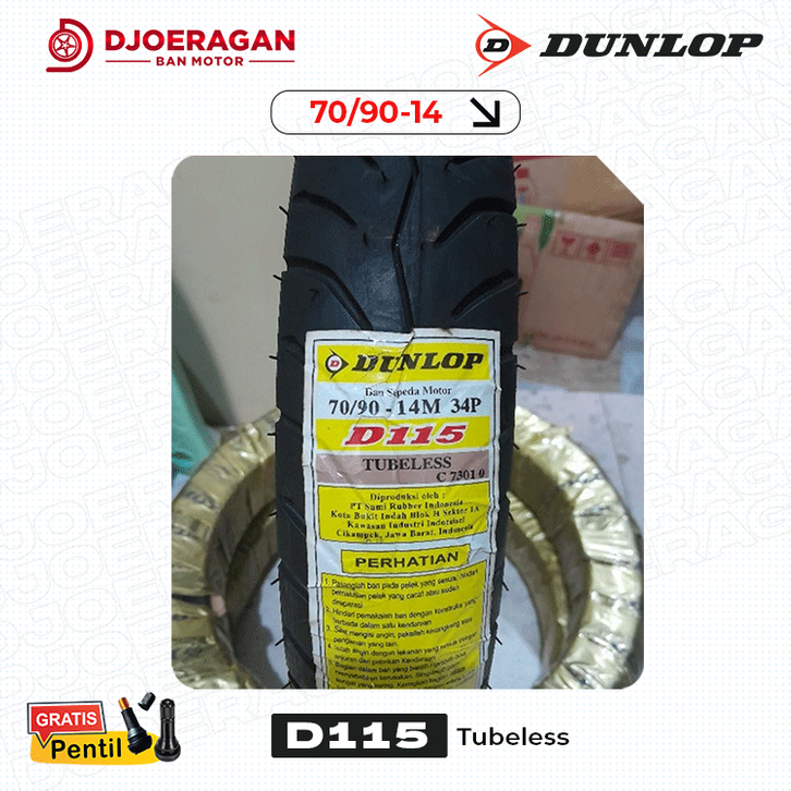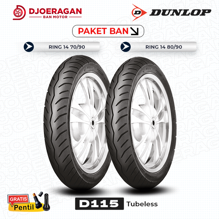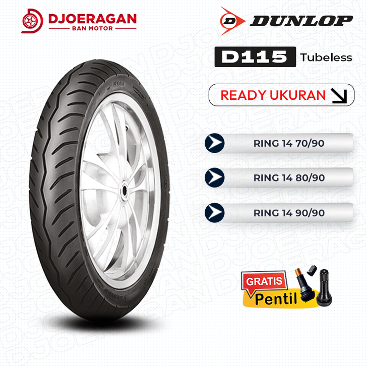 SATUAN/SEPASANG BAN DUNLOP D115 70/90 80/90, 90/90 RING 14