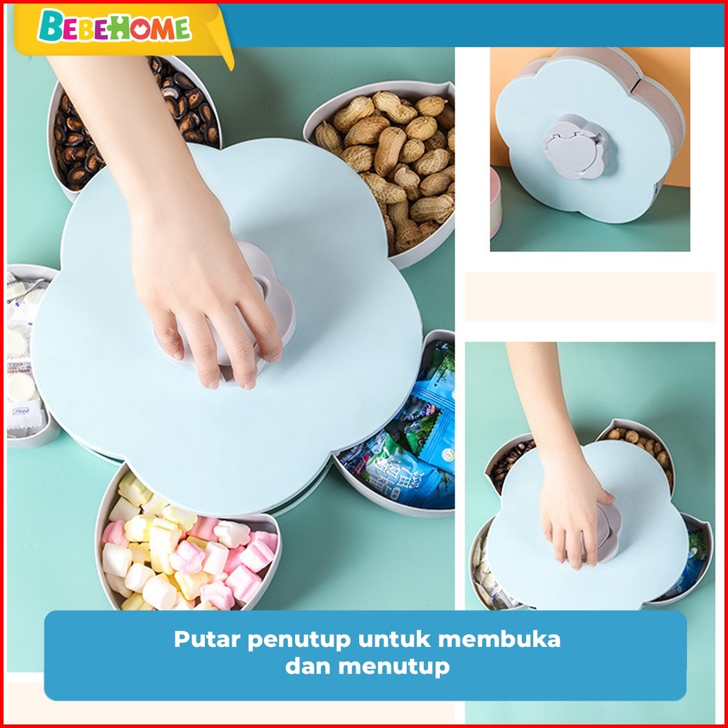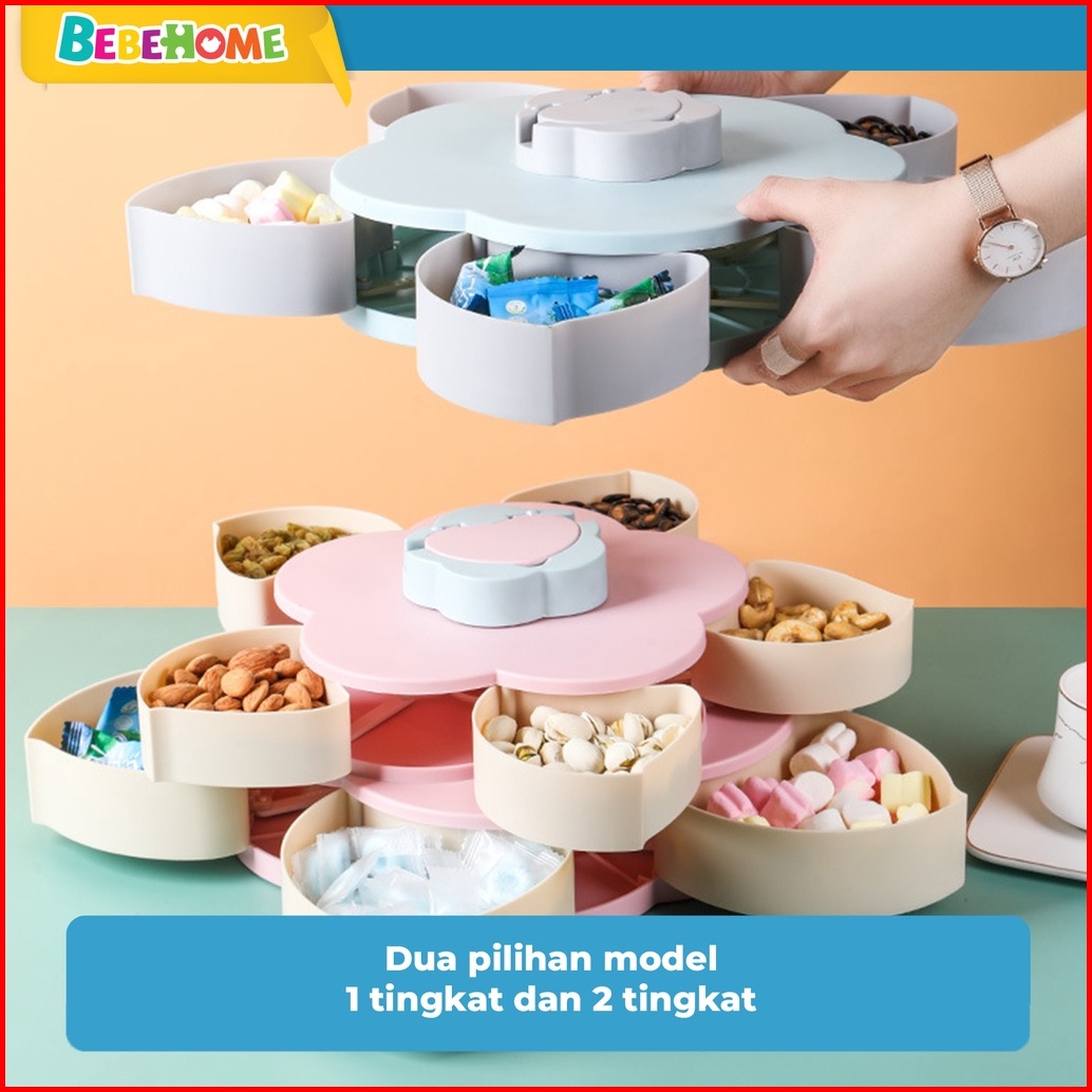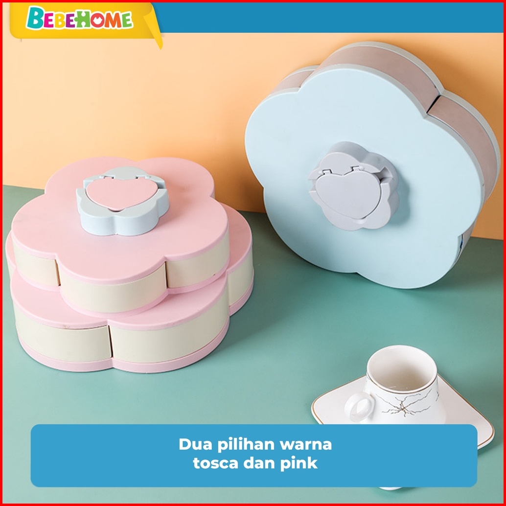 Bebehome Toples Bunga Mekar Toples Putar Kue Candy Snack Buah Tingkat 2 Susun