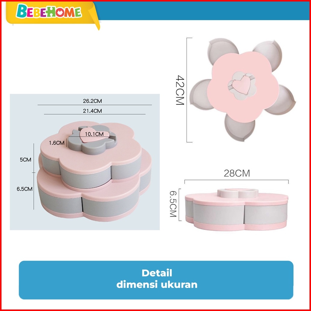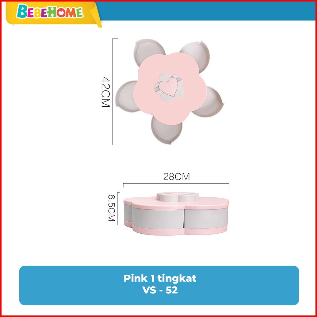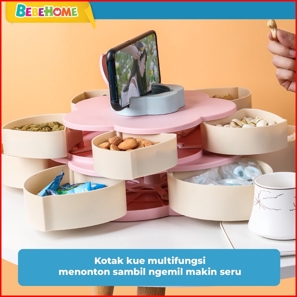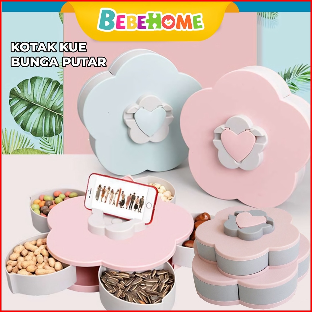 Bebehome Toples Bunga Mekar Toples Putar Kue Candy Snack Buah Tingkat 2 Susun
