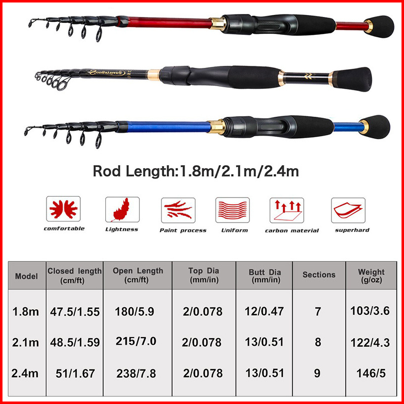Sougayilang Joran Pancing1.8 2.1 2.4m Joran Teleskopik Spinning Fishing Pole For Fishing Tackle Joran Pancing Carbon Jor