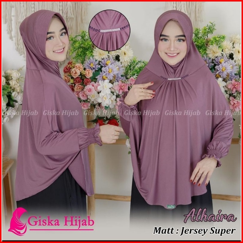 Kerudung Khimar Lengan Payet Ped Antem Bahan Jersey Super Hijab Jersey Alhira