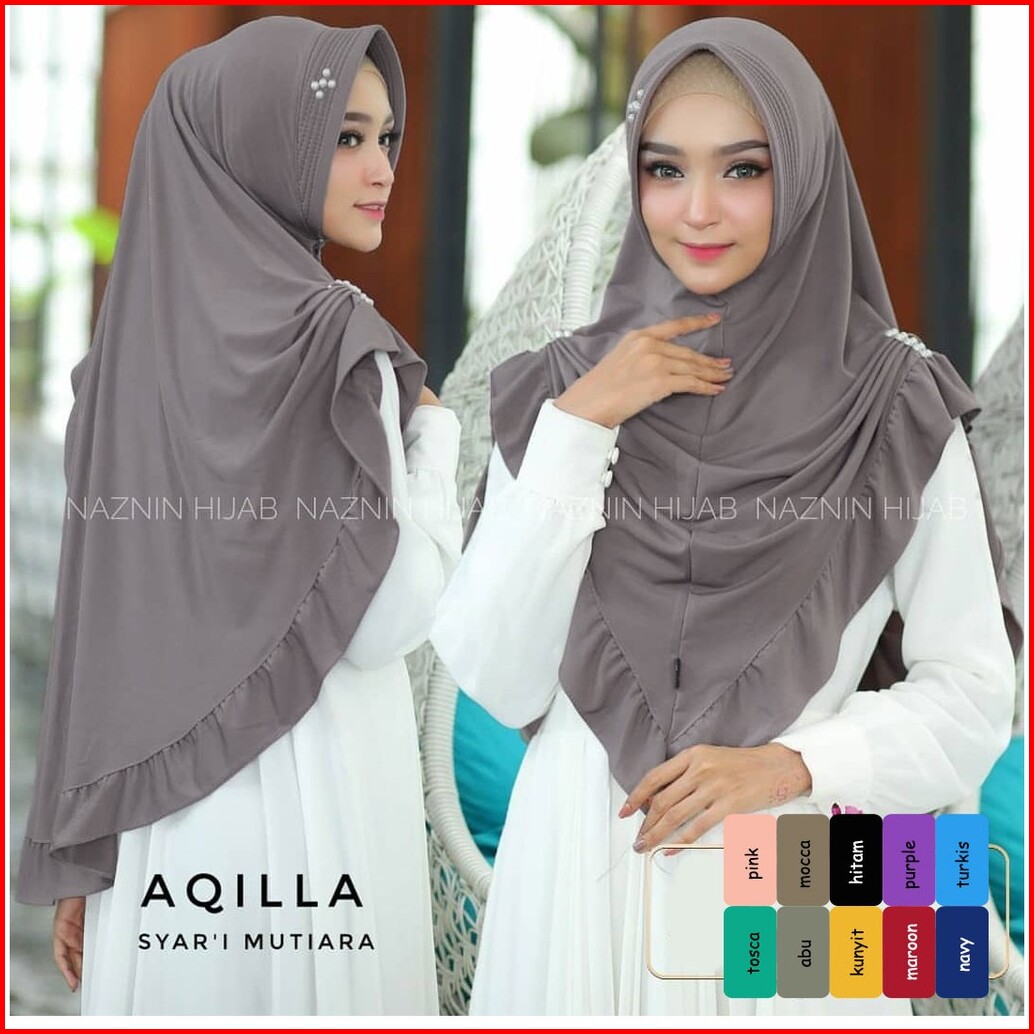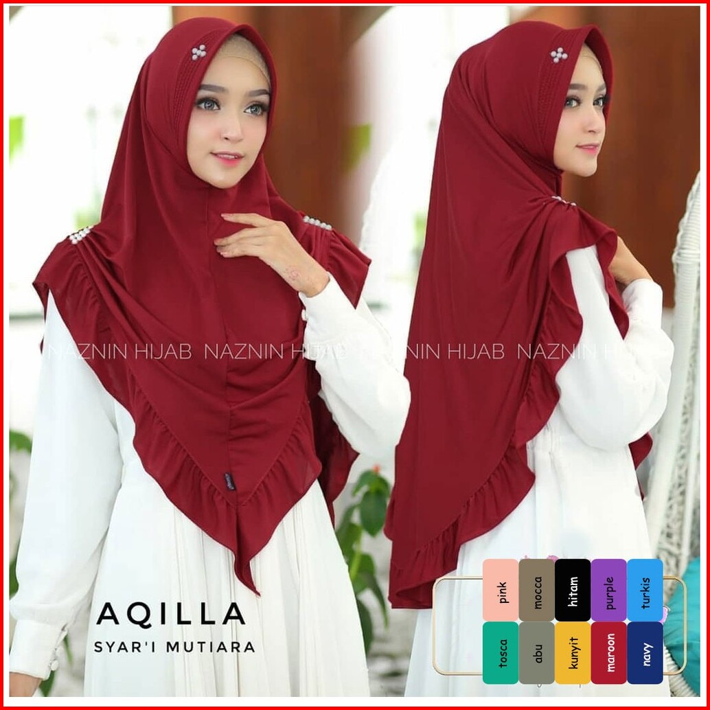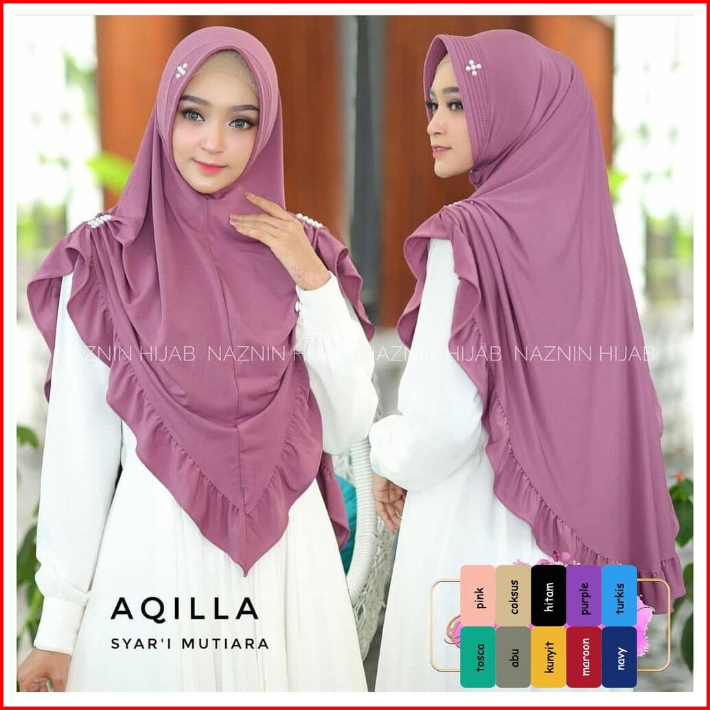 Khimar Shaqila Rempel Purple Mutiara Hijab Terbaru Kerudung Syari Pastan Muslim Wanita