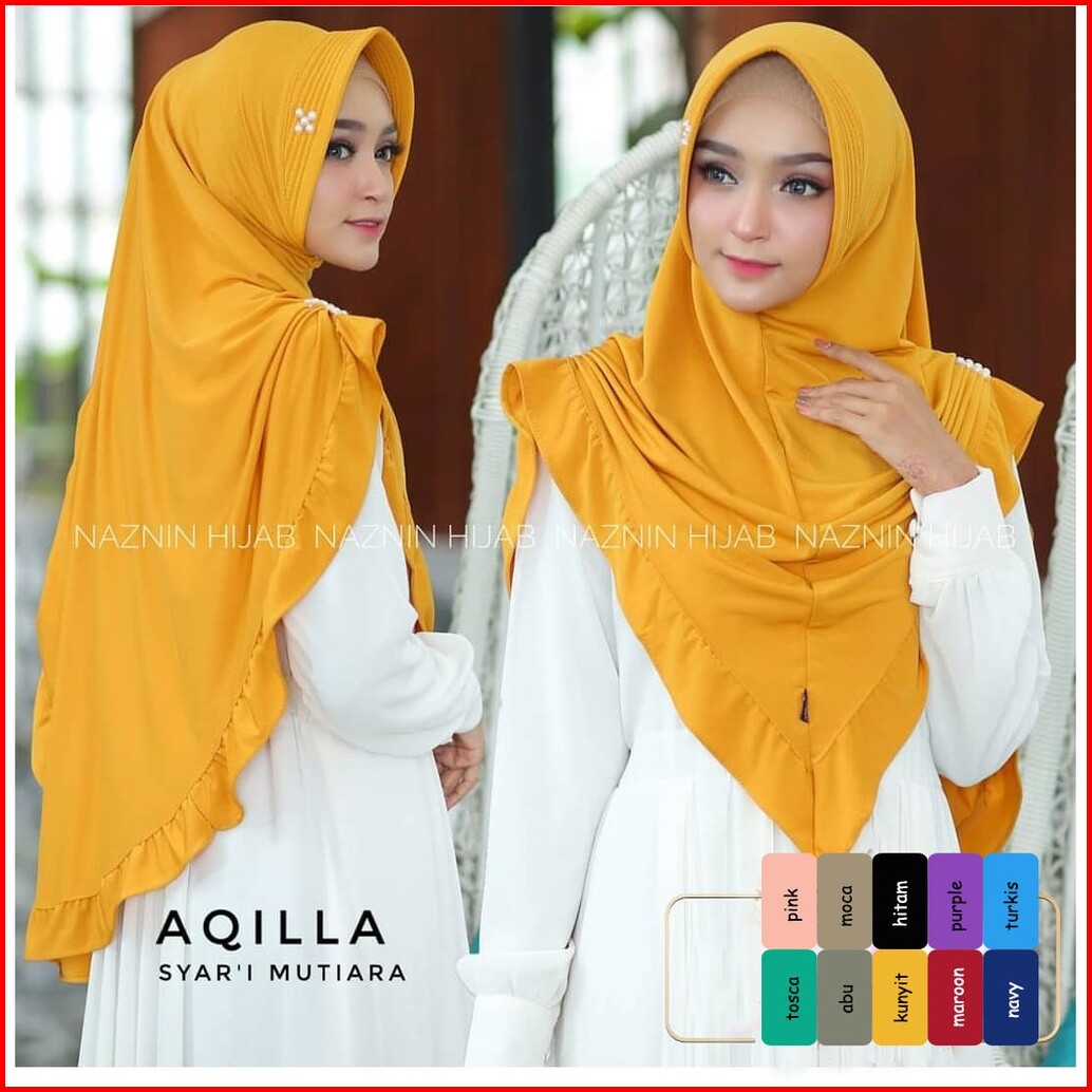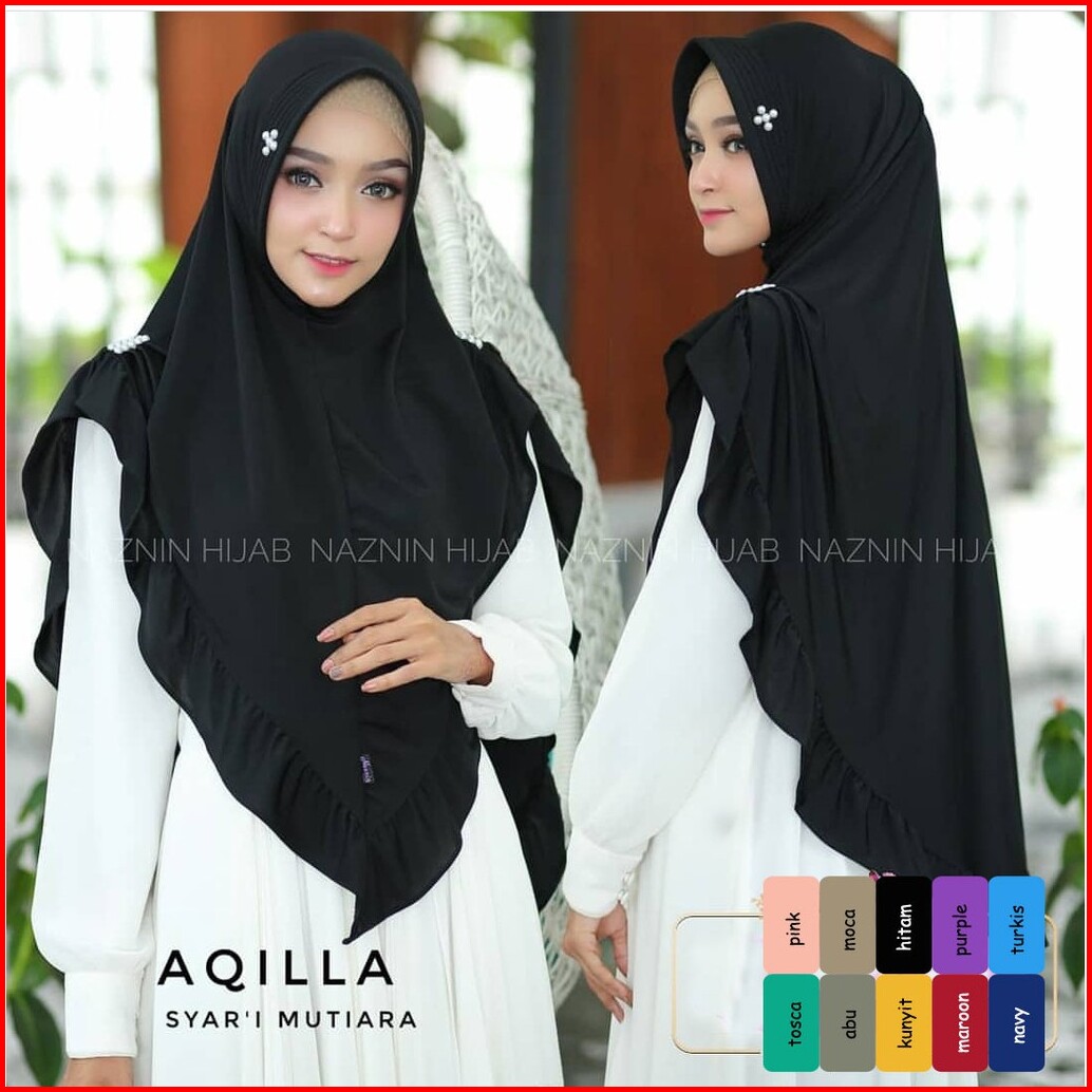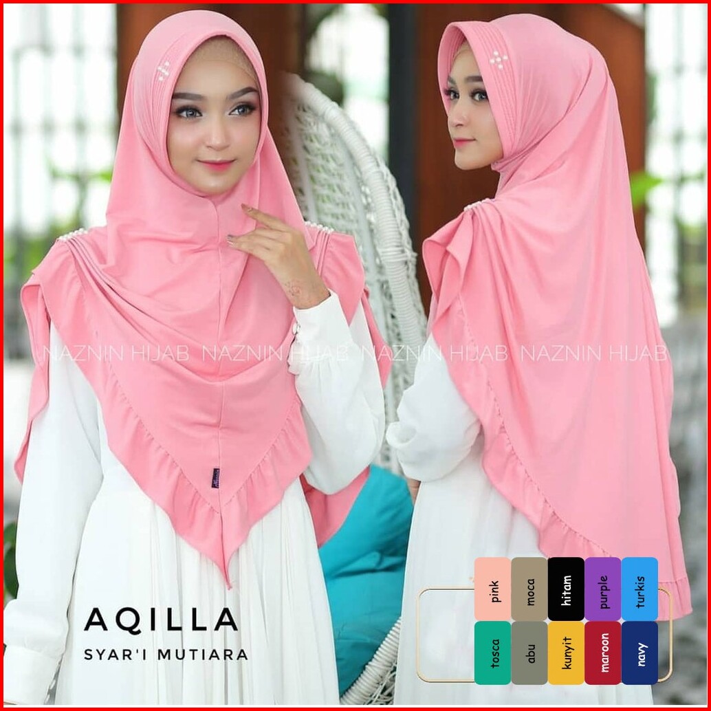 Khimar Shaqila Rempel Purple Mutiara Hijab Terbaru Kerudung Syari Pastan Muslim Wanita