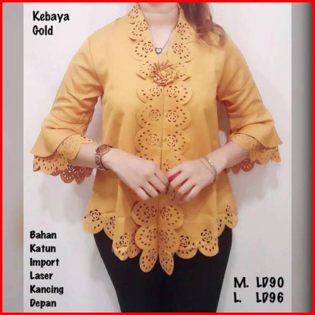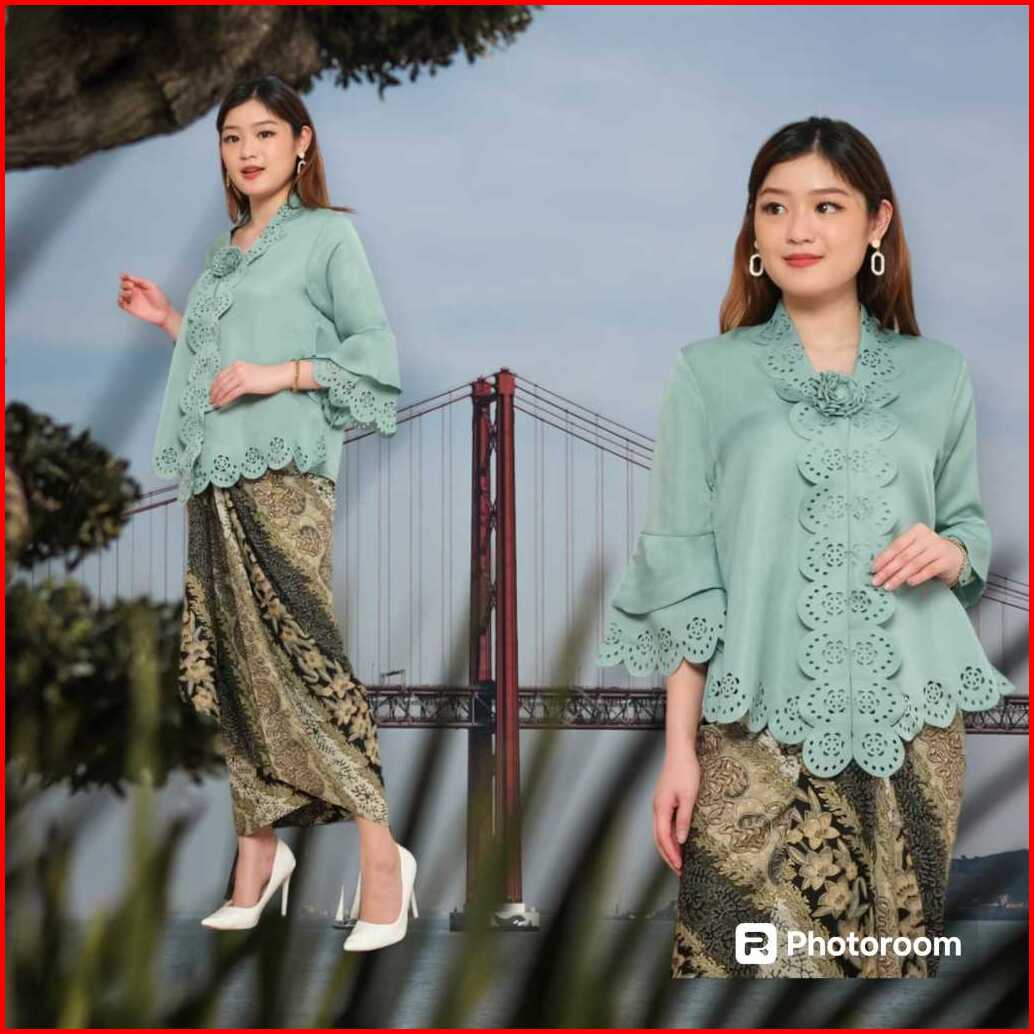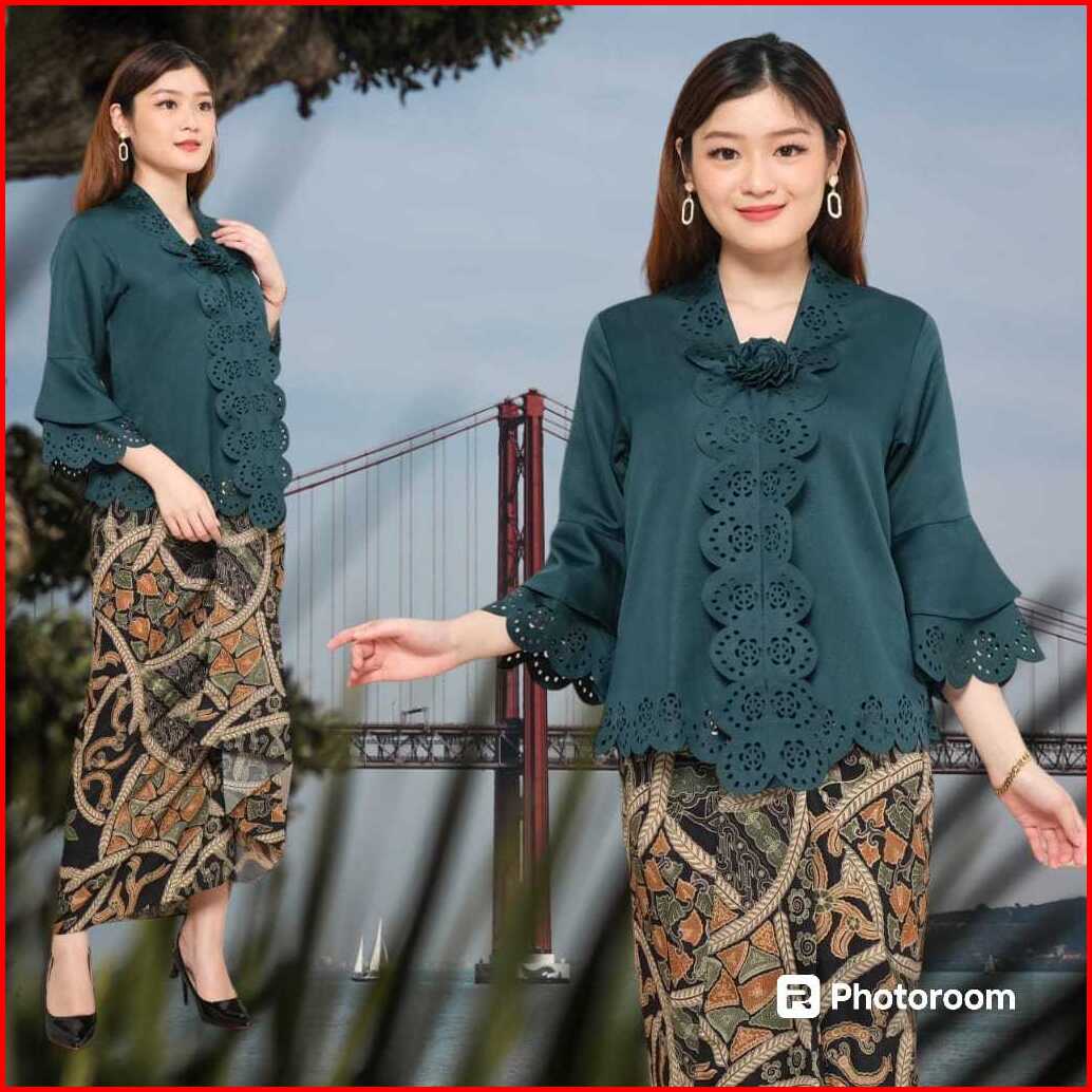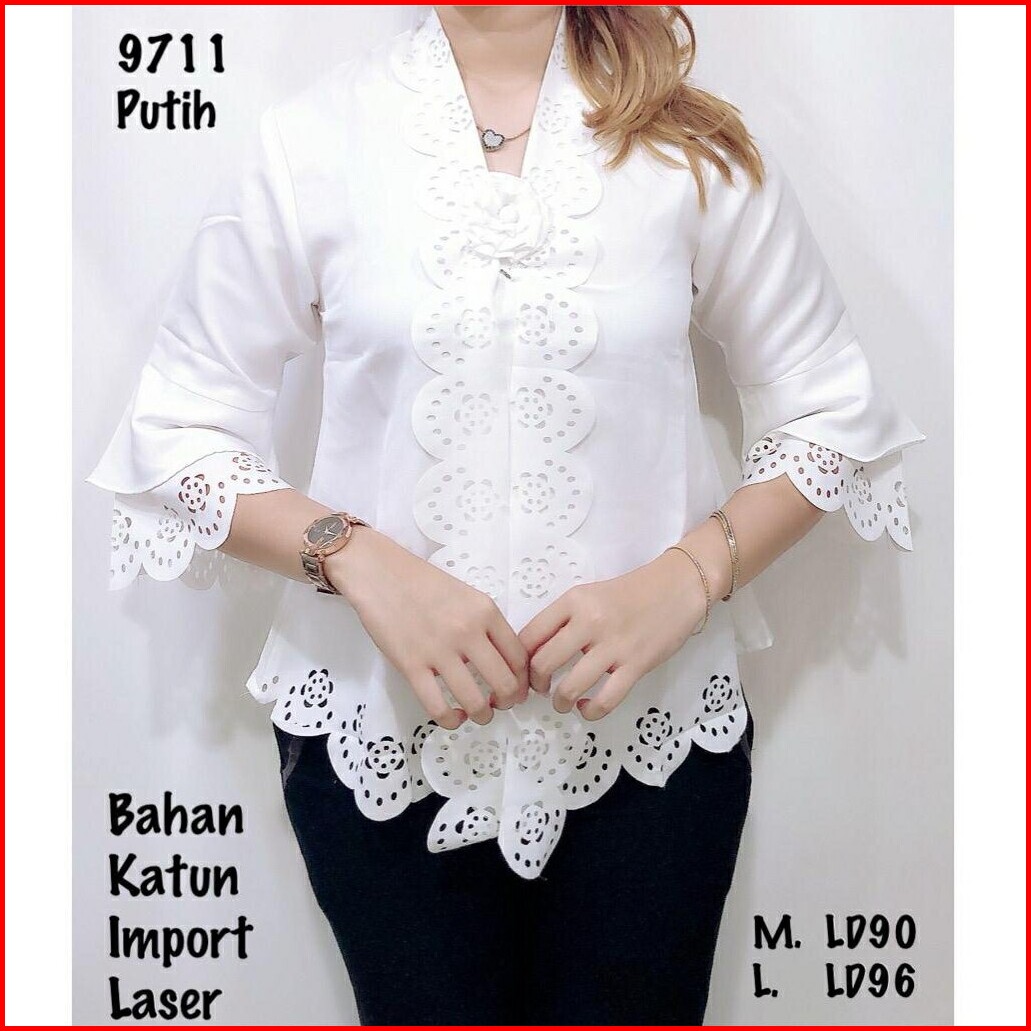 Kebaya Encim Modern Laser Katun Fb Terompet Tangan Panjang