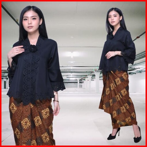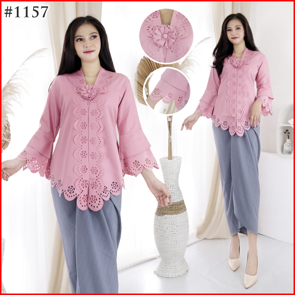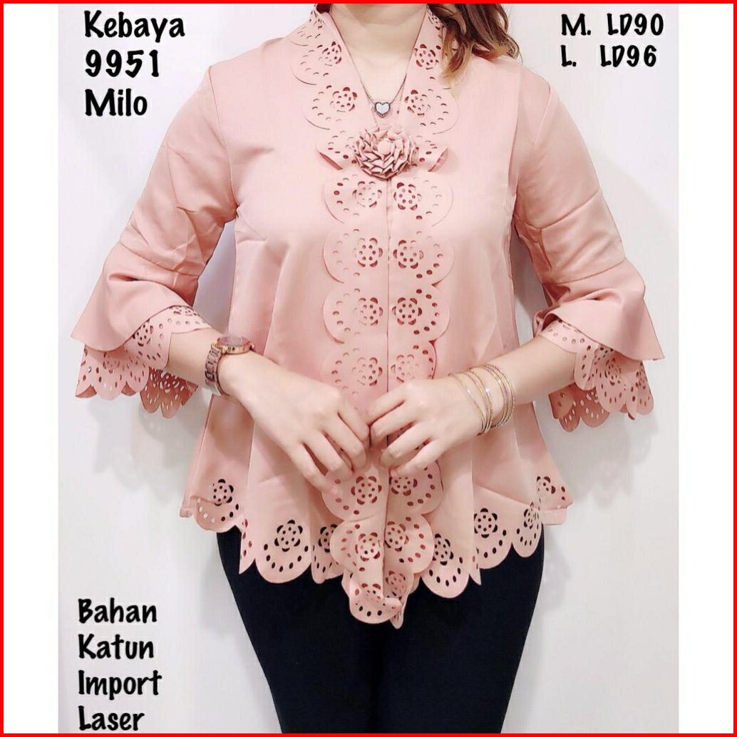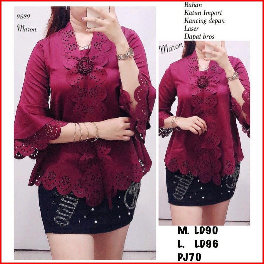 Kebaya Encim Modern Laser Katun Fb Terompet Tangan Panjang