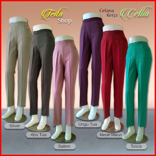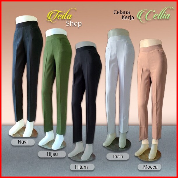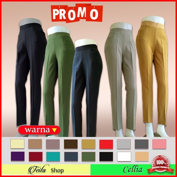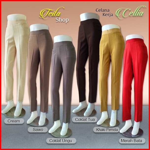 Celana Kerja Size S M L Xl Xxl Merk Cellia Pinggang Karet Bahan Lentur