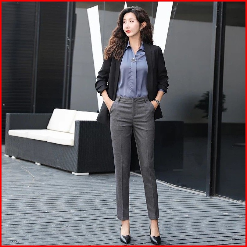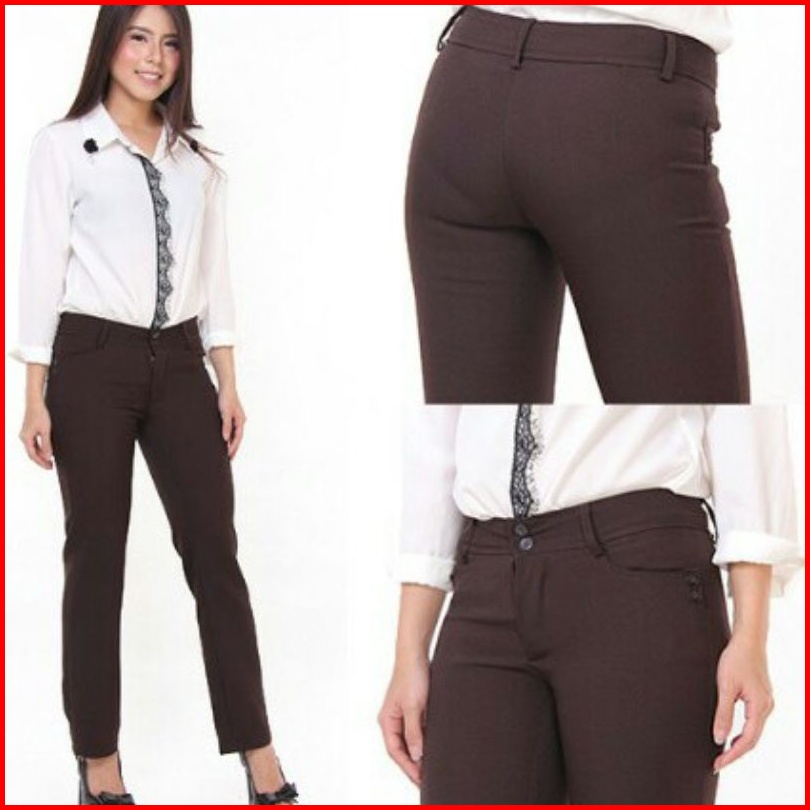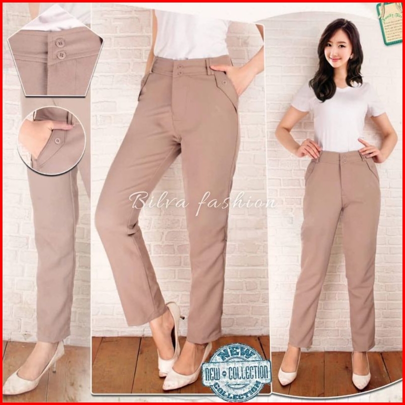 Celana Dasar Formal Kerja Kantor Wanita Resleting Karet Ukuran Kecil Sampai Jumbo S - M - L - Xl - Xxl